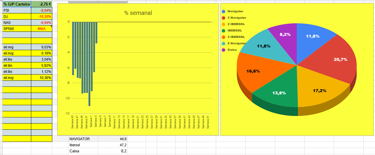 Apesar de não estar a ter resultados satisfatórios, no meio da desgraça até que os -9% comparando com os índices, são razoáveis.