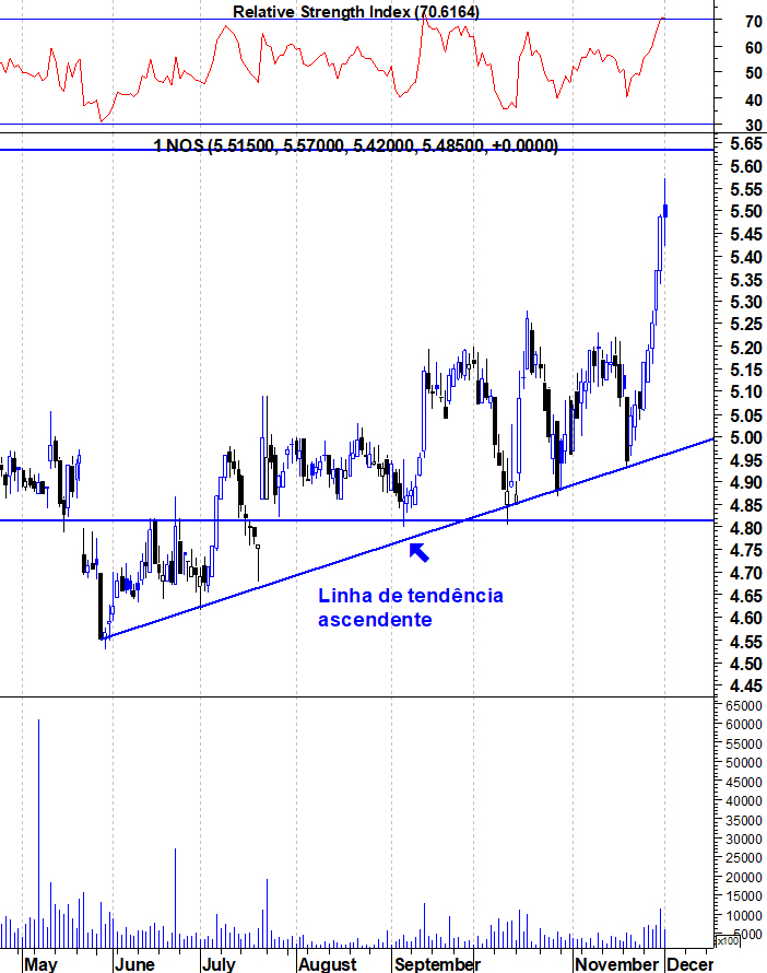 Os sinais de força da Nos multiplicam-se. Os touros já dominam a acção em todos os horizontes temporais embora, depois destas subidas fortes, é natural que uma pequena retracção apareça na próxima semana.