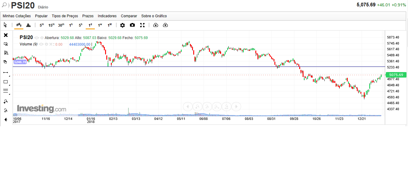 Para terem noção da importância que dou à resistência dos 5.250 pontos, acredito que se houver uma rutura consistente dessa zona, a Bolsa portuguesa tem tudo para ir testar máximos dos últimos 3 anos e meio na zona dos 5.800 pontos.