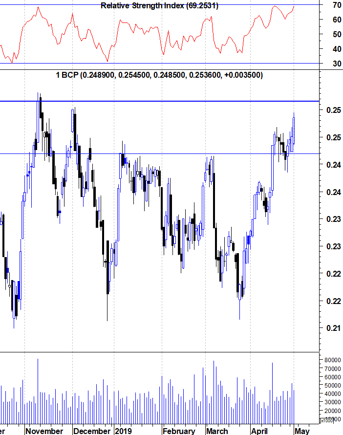 O banco até tem tido uns resultados bons, mas há alguma coisa no ar que não me cheira, tal como este patinar nos 0,24€ que teima em não quebrar os 0,25€. E nisto já se sabe, se nã sobe, desce...