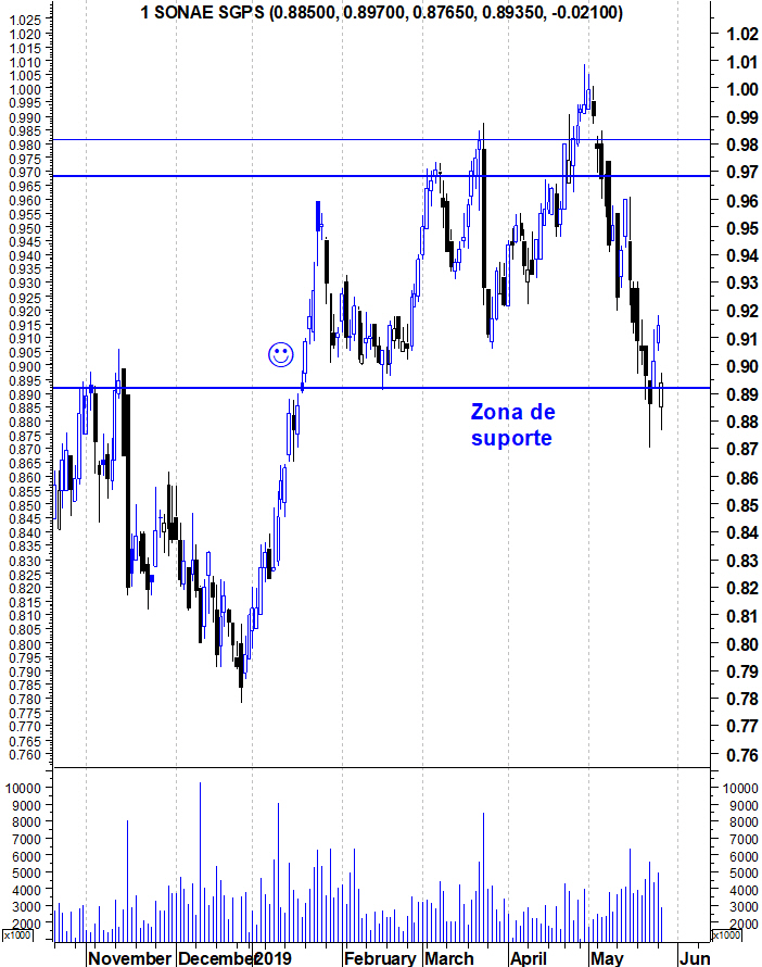 SONAE parece reagir bem ao ex-dividendo. Está na zona de suporte. Um suporte de alguma relevância.