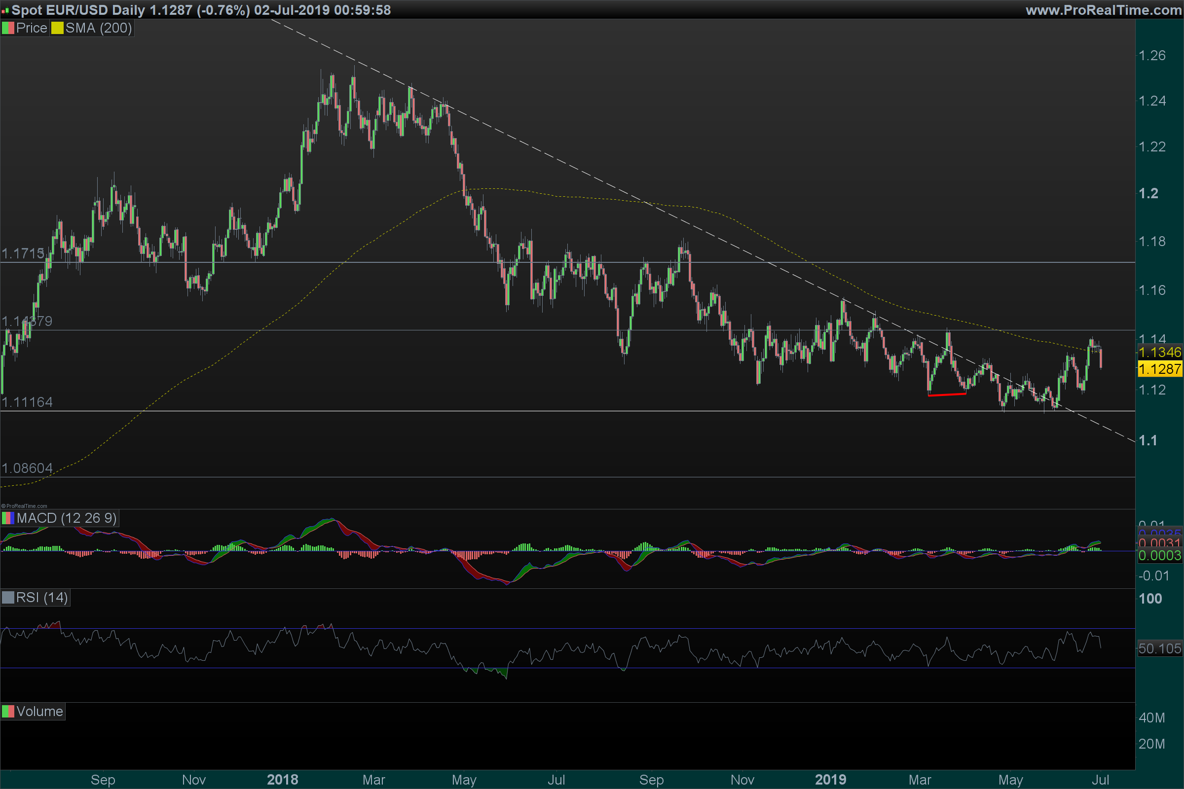 Que tempos !! O EUR/USD andou a recuperar até 1.13 mas já recua com força. O facto é que este par parece viver numa camisa de forças !!!