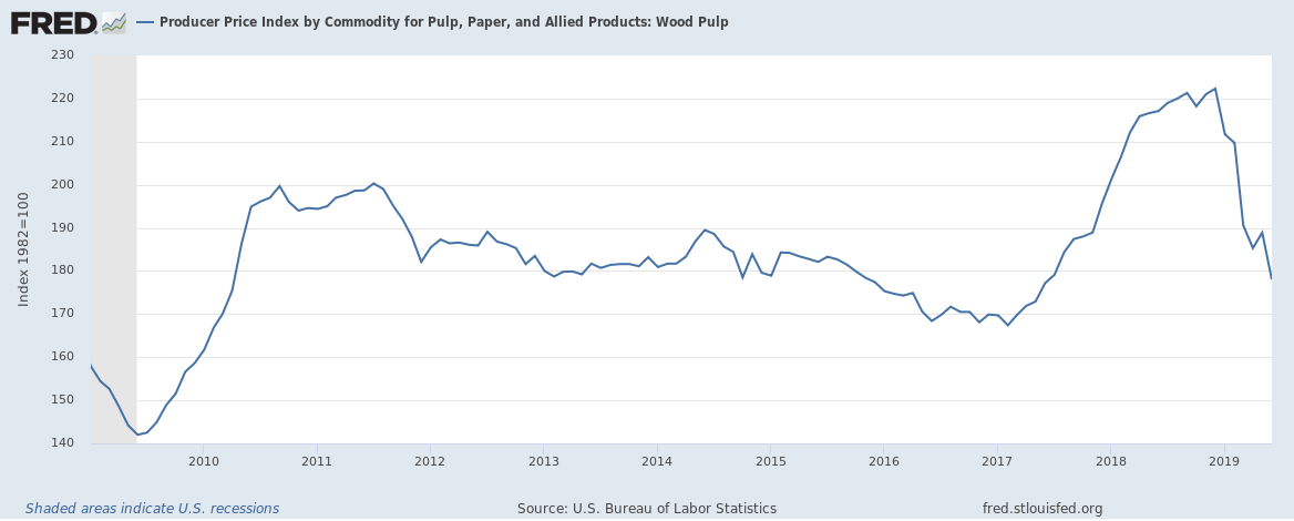 Para 2019, ainda não obtive um match da produção global ou até regional, estimada (todos indicam nºs ligeiramente diferentes). Navigator, Fao, Paptac (Associação de produtores do líder de toda a indústria, Canadá, com 23% da produção mundial) http://www.paptac.ca/
