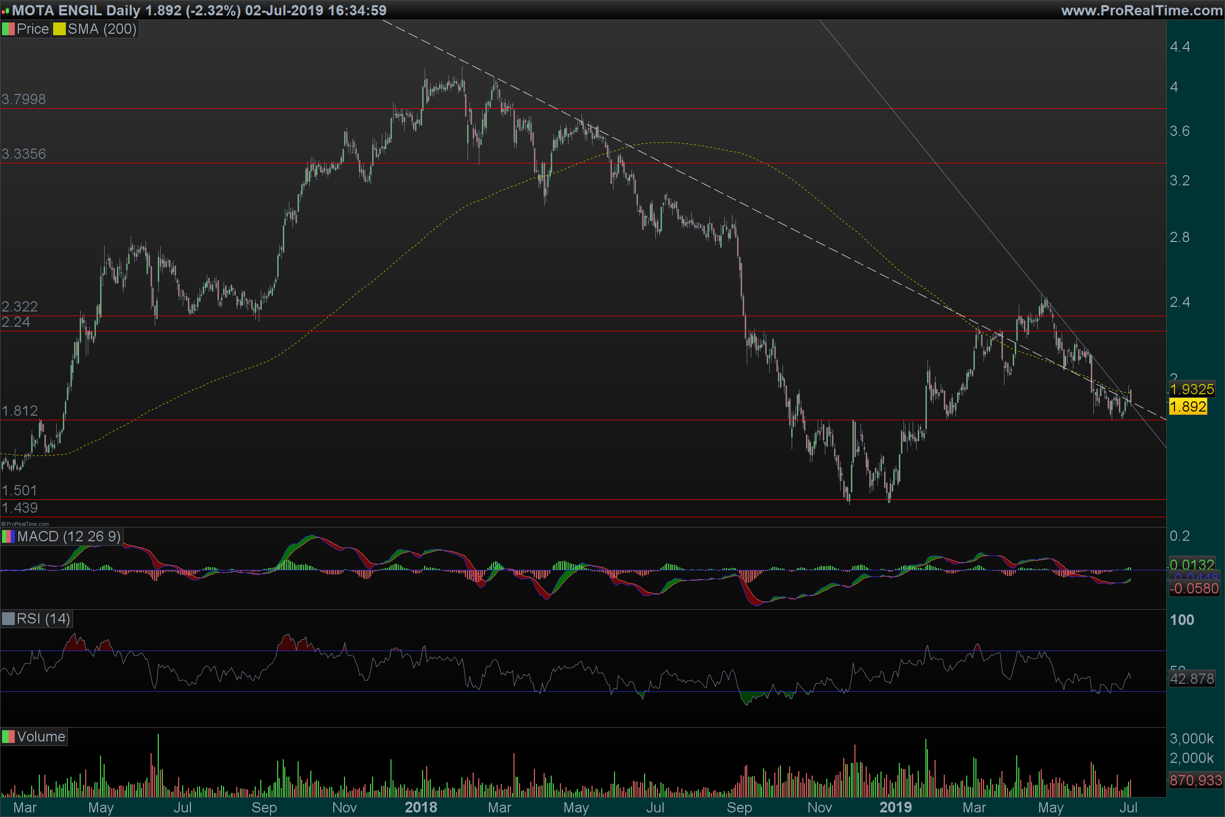 Boa tarde , a mota engil poderá vir no curto prazo tocar o agora suporte anterior resistência nos 1.80 tudo aponta que o possa fazer , zona decisiva entre o bull e o bear nesta acção.