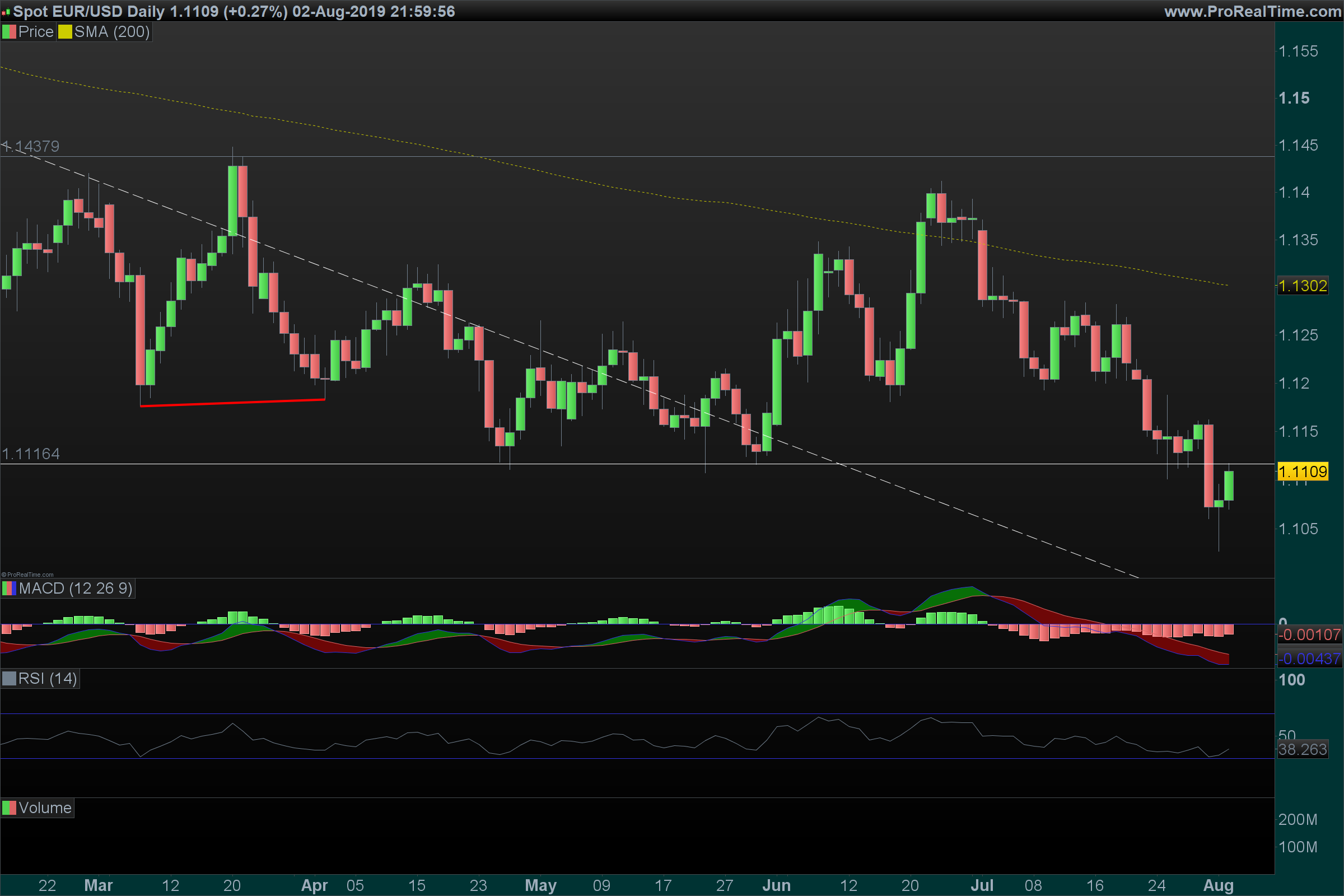 Quanto ao eur/usd da minha perspectiva o suporte está quebrado mas pode ser que volte a ir para cima, em termos de RSI não lhe falta espaço para descer.