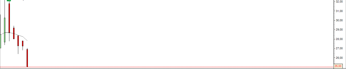 A cotada ainda atingiu os 32 USD e depois foi sempre a cair com velas diária de queda sucessivas .