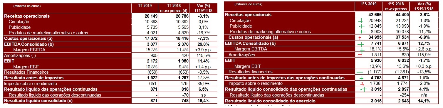 Nem bons nem maus, normais! A ifrs 16 fez subir o ebitda, por passar custos pas amortizacoes, mas o ebit nao mente caiu muito moderadamente. A nossa aposta deve ter perdido ligueiramente menos. Sao resultados em linha com a cotacao nada do alem