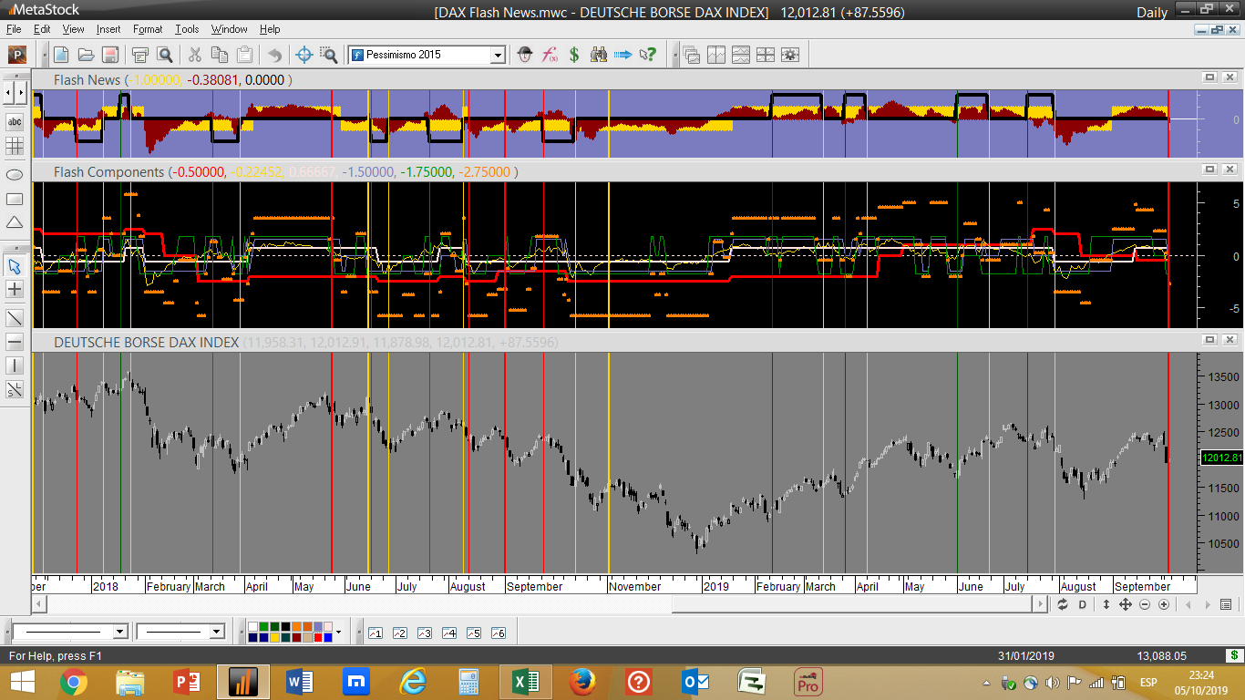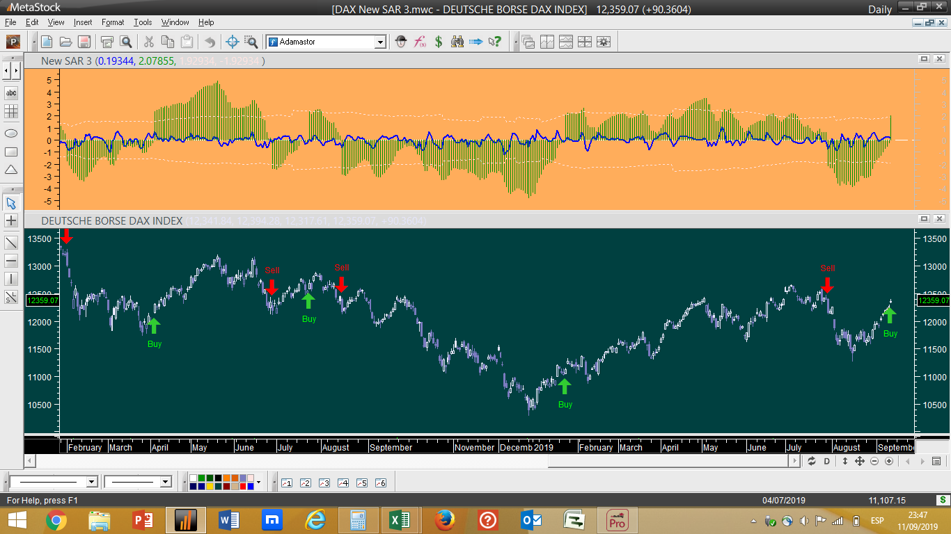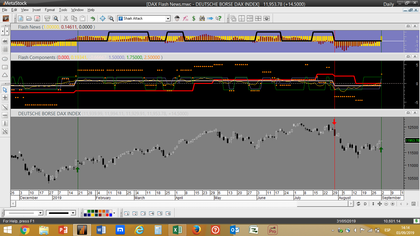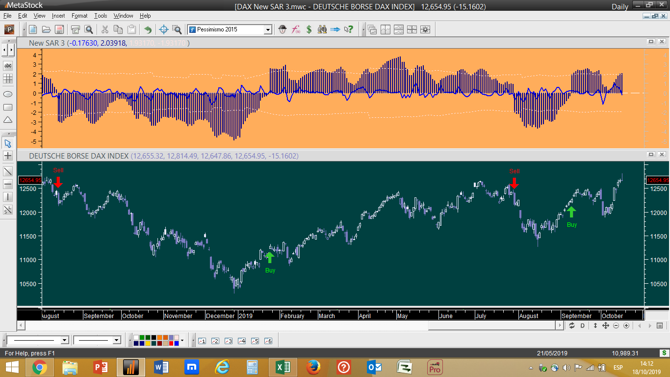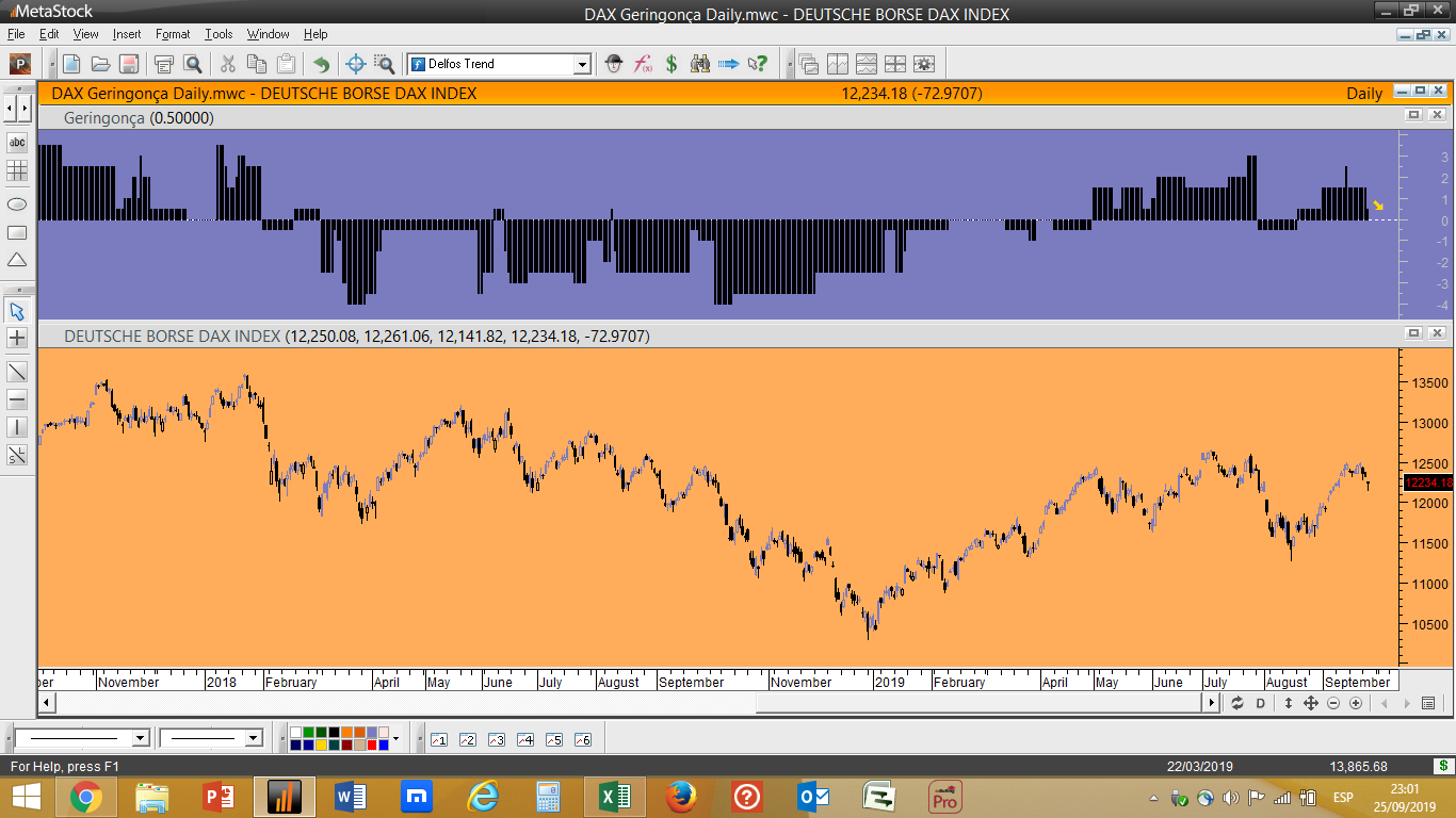 O DAX teve aquí uma interrupçao do seu sinal técnico de vendido, tomando em conta o conjunto dos indicadores globais que integro para verificar a sua posiçao estatisticamente mais correta no médio prazo.