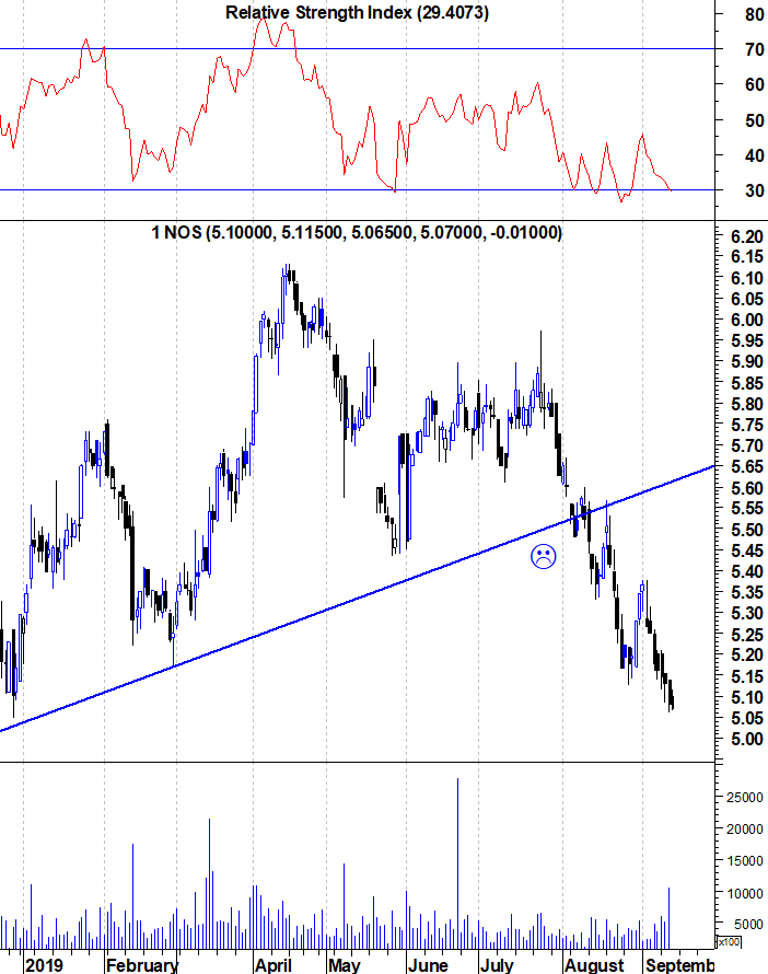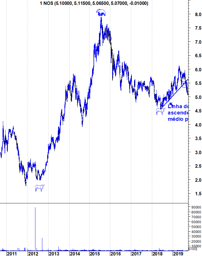 Apenas para deixar uma actualização dos gráficos da NOS que continua o seu mau comportamento depois de quebrar a LT ascendente. Está a entrar em terreno "sobrevendido", o que pode propiciar um ressalto, mas o aspecto de médio prazo é feio e, como já referi anteriormente, depois de quebrar a LT, deixei de estar optimista na acção. Aquela - como várias vezes referi - era a linha que suportava a NOS e a sua quebra foi o primeiro grande sinal de fraqueza da acção.