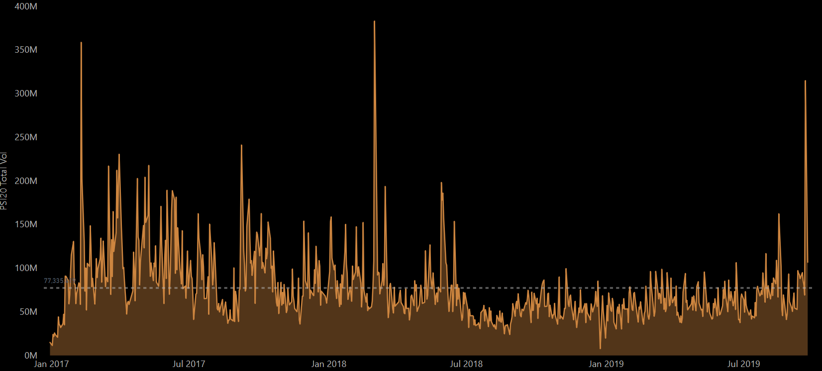 PSI 20 QUE SÃO 17 OU 18 8 JA NÃO SEI BEM ) +15% FACE AOS NIVEIS HISTORICOS.