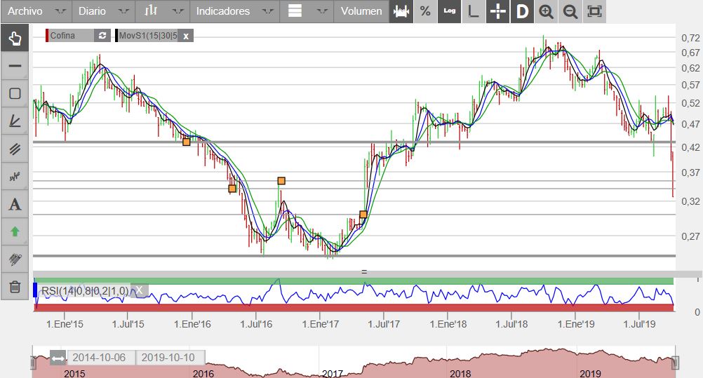 Em termos técnicos creio que podemos ter uma zona de suporte nos 0.34-0.35 que em conjunto com o RSI esticado em oversold pode ajudar a fazer uma "paragem na queda". Abaixo só os mínimos nos 0.24€.