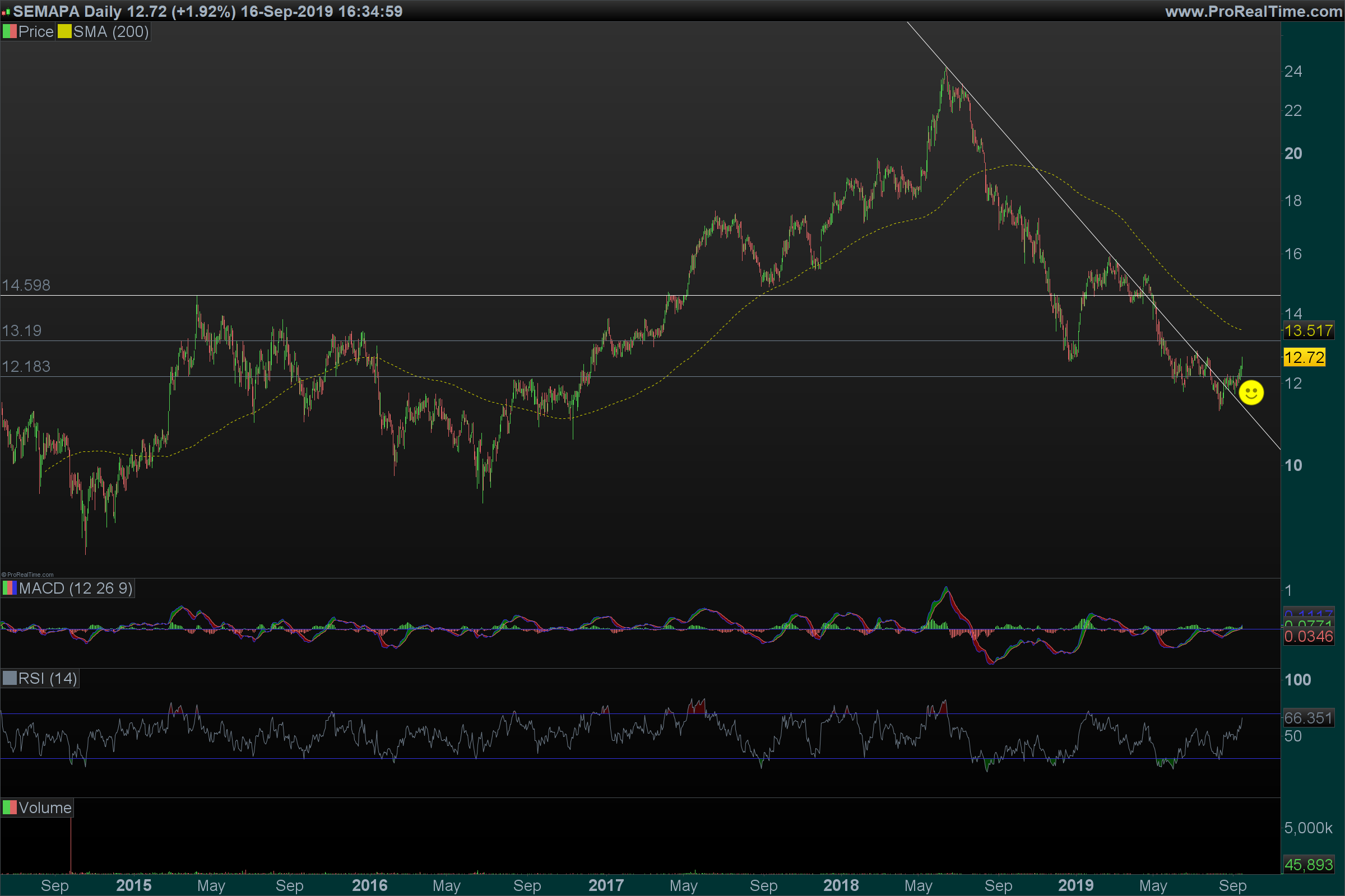 SERRA LAPA Escreveu:A Semapa está "jeitosa" mas ainda me parece que o gráfico indica uma queda de pelo menos mais 1 Euro até à próxima resistência, por isso é aguardar com calma até lá e ver como reage aí