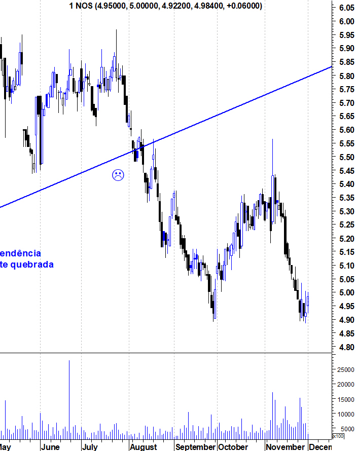 A nós mantem tendençia de baixa no curto e longo prazo e alta no médio prazo,a zona dos 5,60 parece ser agora a zona de fronteira enquanto não acontecer há que dar o beneficio da dúvida aos ursos.