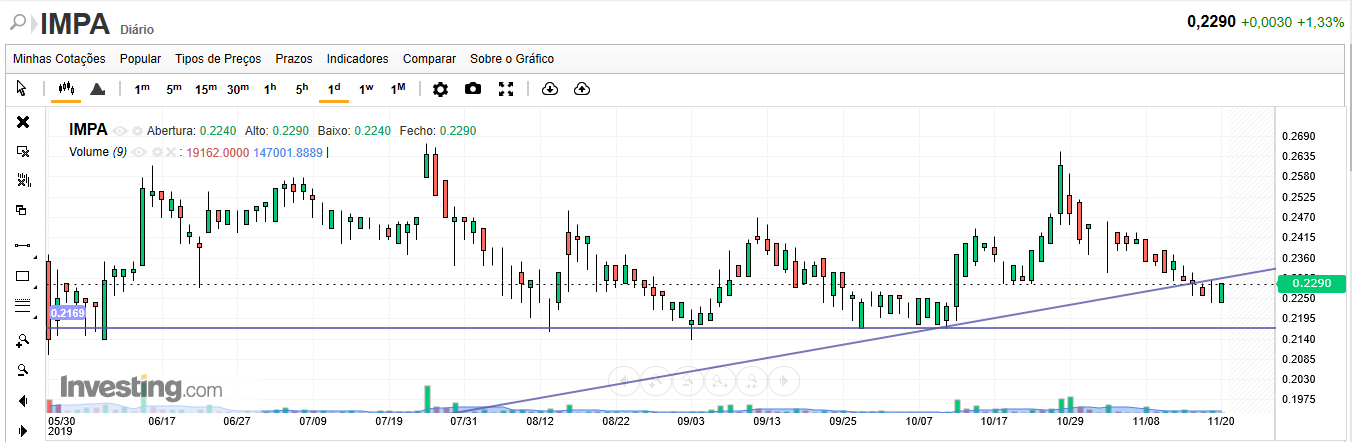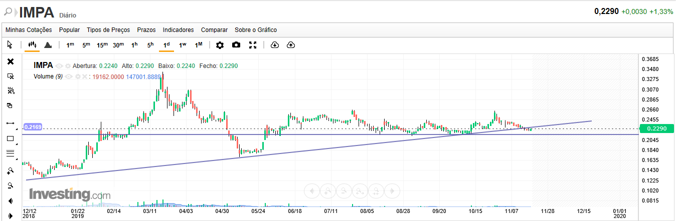 Não é a minha praia , mas parece me que o mais importante para que a Impresa mantenha a aura de titulo do ano, é que se mantenha acima do fundo triplo ou acima da linha do um H&S que liga os topos ou uma qualquer figura que sirva para justificar que o caminho é para Norte, pois os resultados assim o justificam !