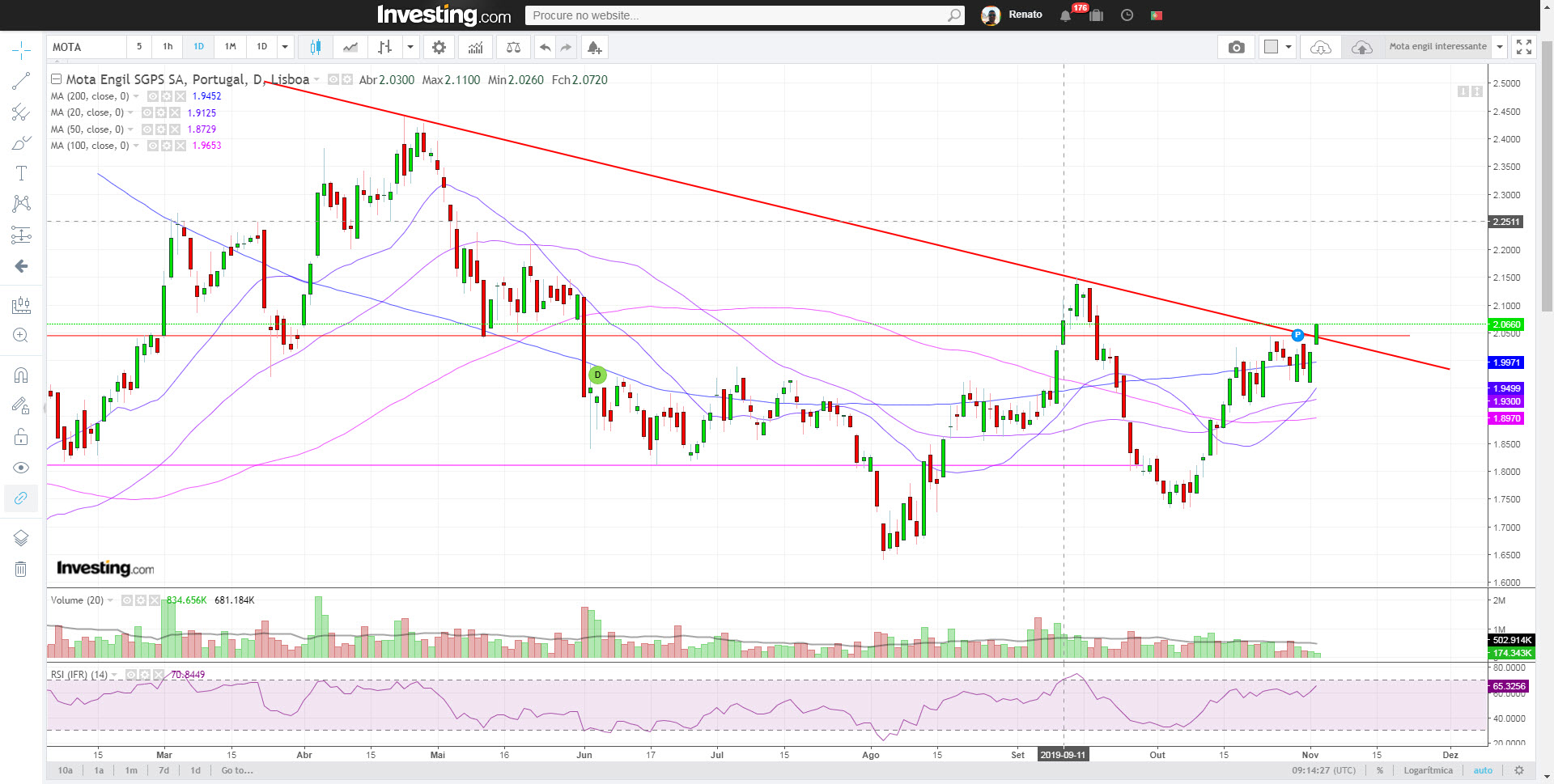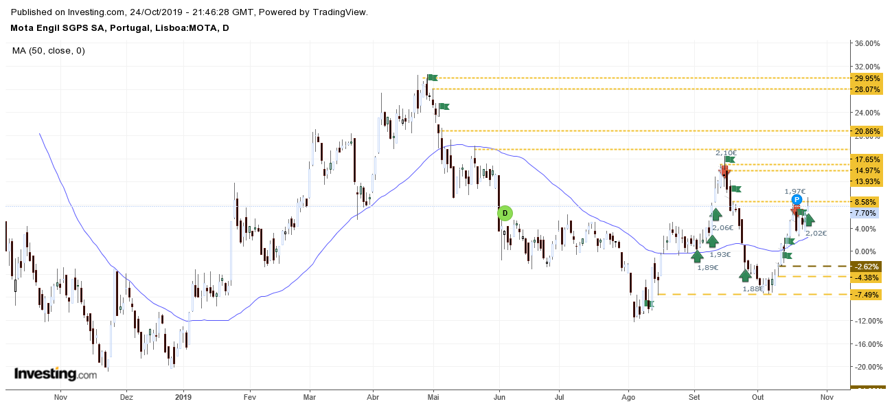Novo máximo relativo na Mota... acima neste momento da resistência dos 2,10 e com bom volume.