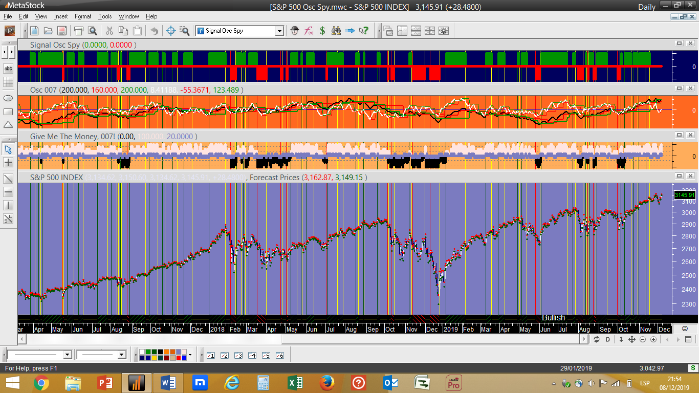 De todas as formas, ao contrário do que ocorria no passado com outros sistemas de trading, os indicadores principais dos sinais que agora disponho assinalam uma nova particularidade: a percentagem optimizada que se deverá arriscar no mercado em qualquer situação, marcando algo mais em relação ao que costumava usar no passado, onde tinha somente sinais posicionais positivos ou negativos consoante a tendência dominante a assumir.