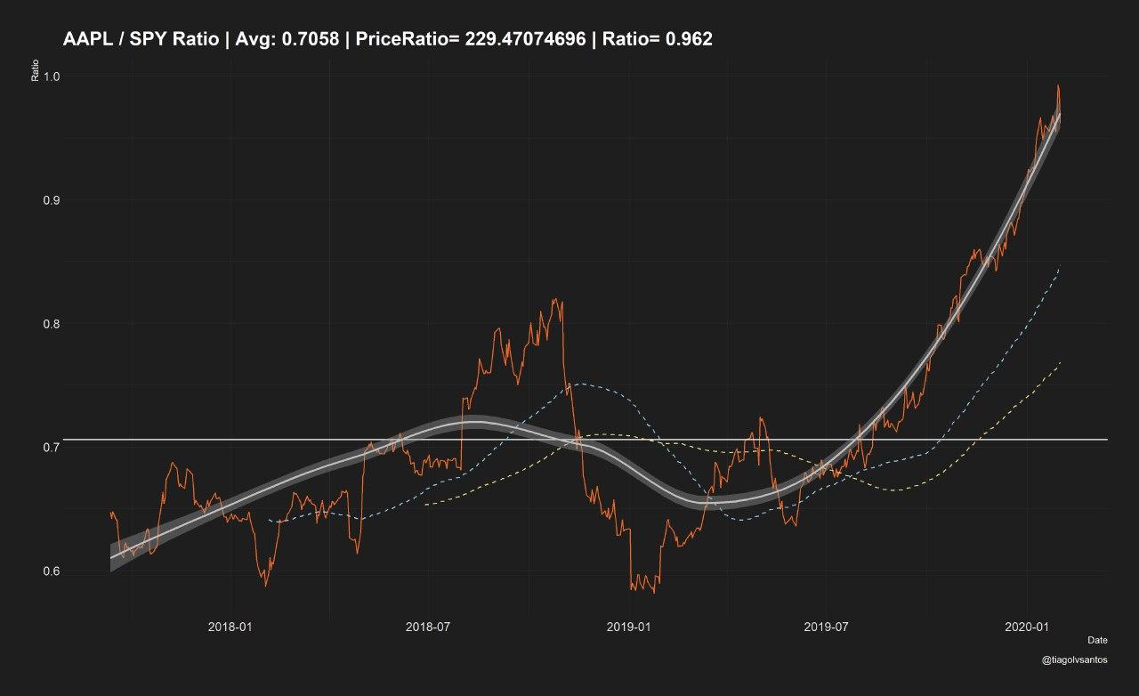 De forma a perceber melhor o movimento ajuda fazer o rácio MSFT/SPY ou AAPL/SPY ai sim, dá para ver bem o movimento parabolico.