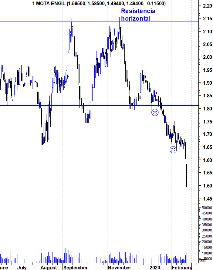 Deixo os gráficos actualizados da Mota que creio ser a acção que mais tem caído no PSI20. A ideia não é olharmos para os suportes mas sim termos noção da dimensão e velocidade da queda.
