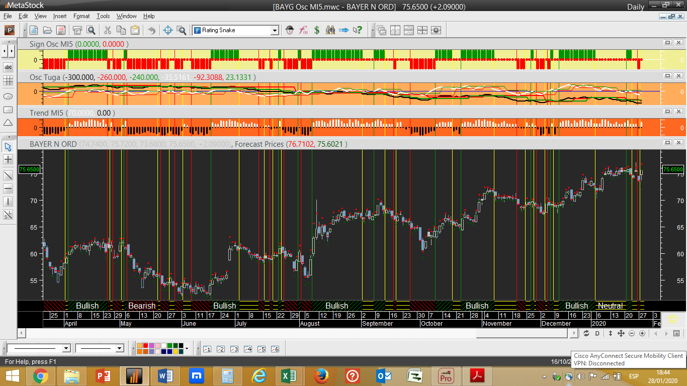 O gráfico do dia tem a ver com um papel pouco falado em que os testes passados apontam para uma eficiência de acertos dos sinais de compra e venda muito elevada por parte do sistema “Osc MI5”. No caso em concreto refiro-me à Daimler, que para já se vai mantendo na carteira com um sinal claro de vendida.