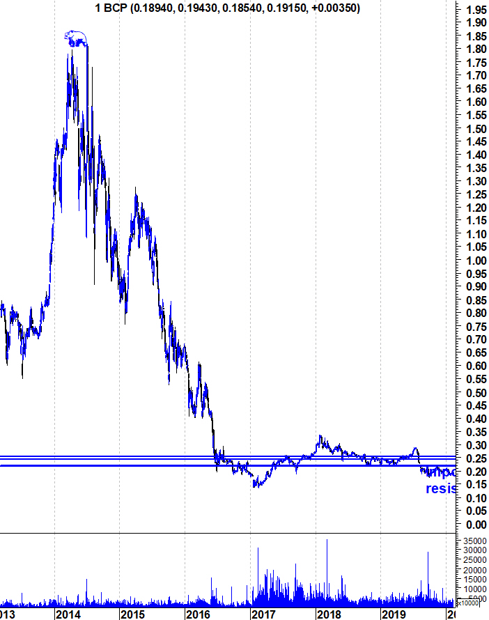 naosei, os gráficos que coloco são gráficos ajustados do aumento de capital, ou seja, dá para perceber se os investidores estão ou nao a ganhar dinheiro. Aqui fica o gráfico de longo prazo do BCP.