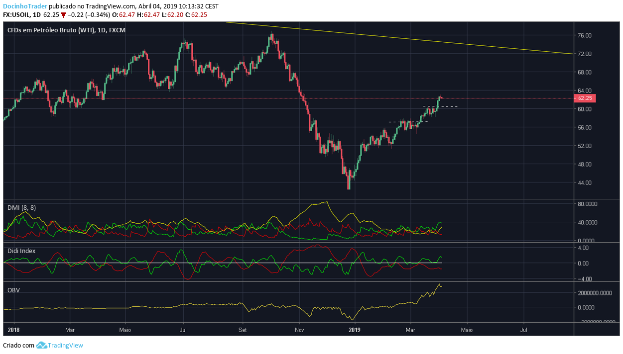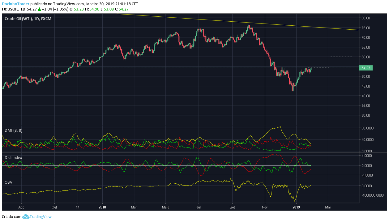 Com a situação na Venuzuela a tornar-se cada vez mais complicada e eventual invasão dos EUA e onde hoje vemos Maduro a falar num novo Vietname a situação de quedas no petróleo pode ter terminado. O gráfico do Brent tem um Head and Shoulders inverso o que significam subidas fortes.
