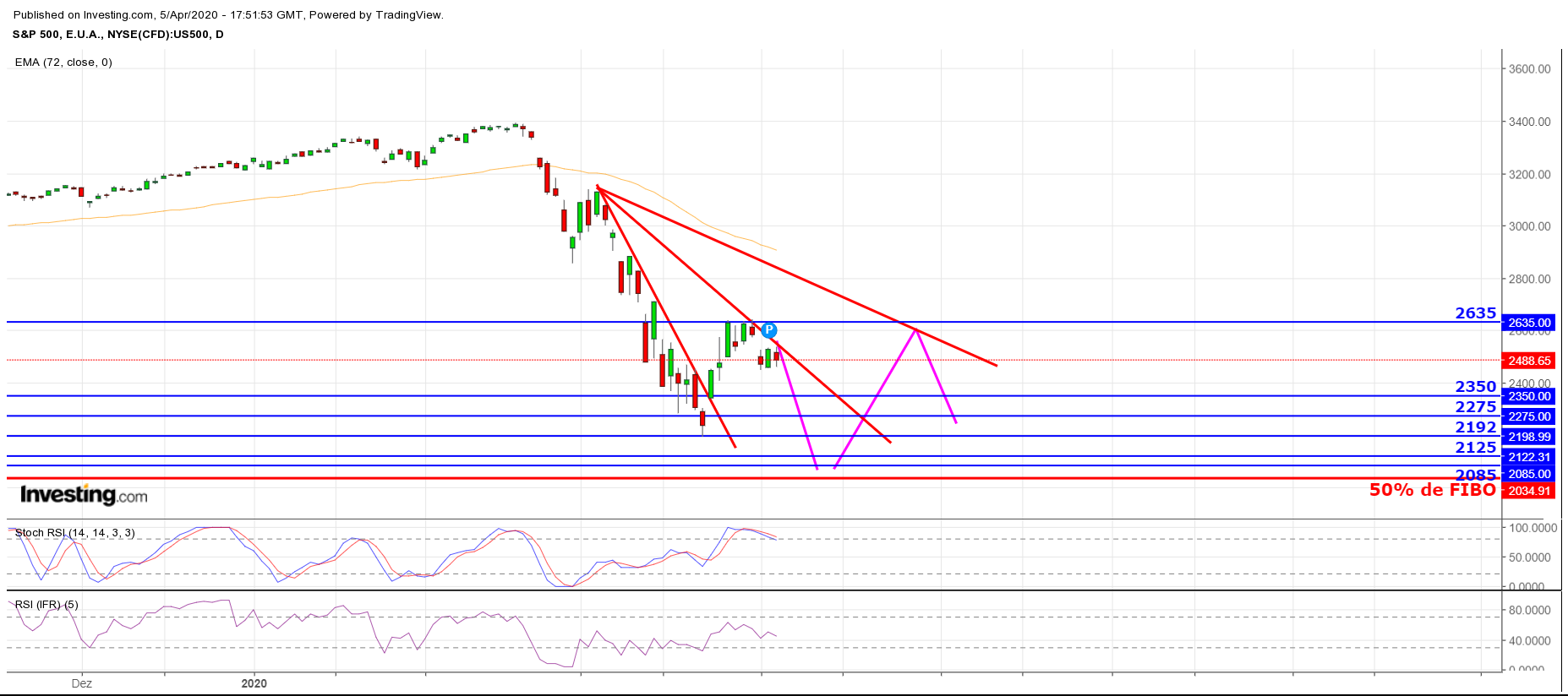 Por enquanto, apenas um rebound em Bear market, mas, no After hours S&P500 já sobe 3,81% para os 2586 pontos (já acima da MMS20). Primeira RF nos 2711.
