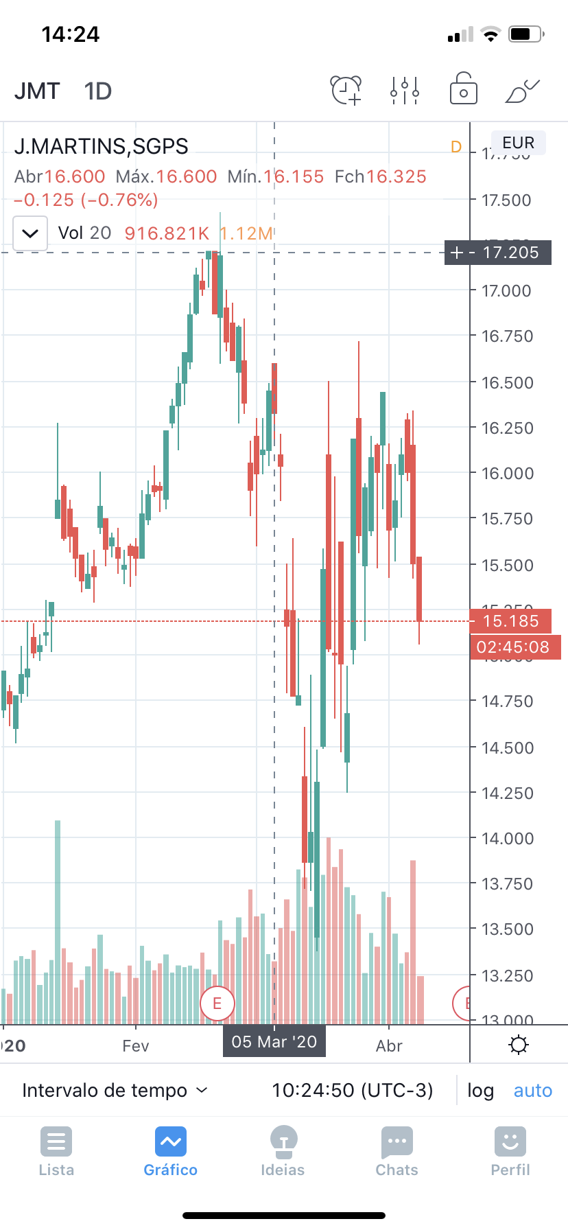 Se há acção que não mexeu nada com a crise é esta portanto para mim continua cara, ainda por cima, com as restrições de horário e afins. É verdade que sofre menos do que as outras com a crise do vírus, mas também é verdade que a cotação nem mexeu.