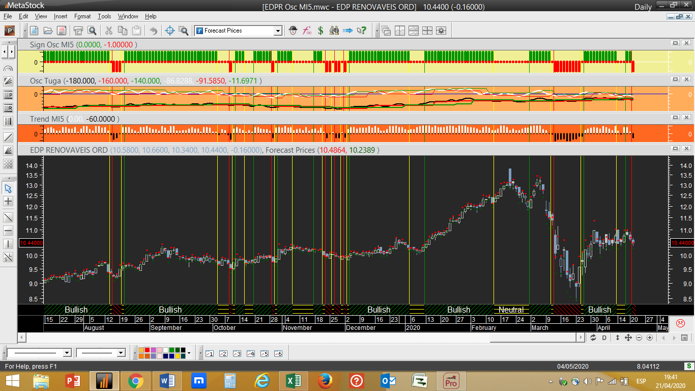 Mota-Engil – Passa de vendida a neutral. Trata-se da única acção que ainda não tinha sido alterada na sua posição inicial desde que a carteira se iniciou desde o princípio deste ano, no gráfico abaixo pode-se verificar que a tendência diária e o respectivo ciclo de trading passam finalmente a terreno ascendente. Custou cortar a sua posição curta, mas agora foi-se! Por quanto tempo? Só o futuro e o mercado o dirão.