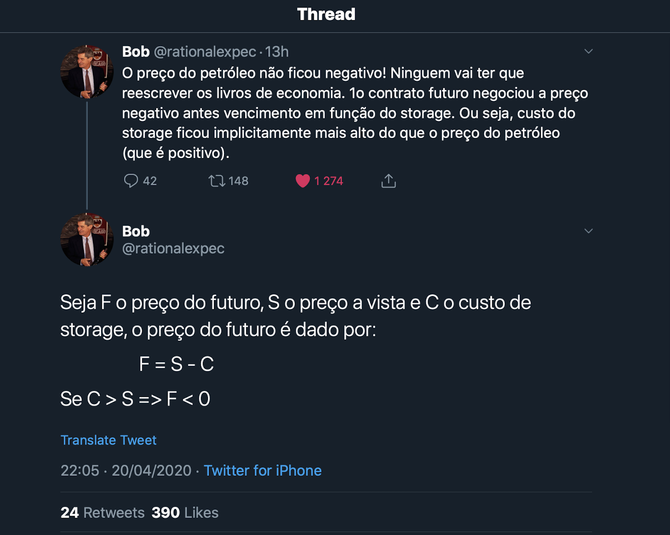 Há também uma questão importante adicional a considerar em relação ao que está a acontecer. Na esmagadora maioria dos contratos de transporte - especialmente nos marítimos - há uma variável no custo que depende do preço nos combustíveis, é aquilo que se designa por Bunkering adjustment factor (BAC). Com os preços dos contratos de referência negativos, ´há navios que estão a pagar para transportar a carga...