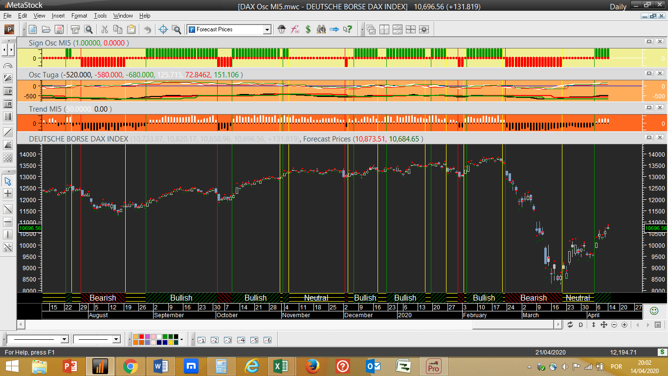 O resultado disto tudo é que muitas das carteiras seguidoras de tendências, em particular as que dependem de prazos curtos como é a presente hedge-fund “Osc MI5” quase toda focada em acções que aqui trago todos os dias, começam de facto a virar a cabeça ao prego num corre-corre para ver se mantêm ou salvam ainda uma parte substancial dos lucros amealhados durante a altura louca das quedas infernais do mês passado, procurando por meio de programas matemáticos encontrar o vector dominante das correntes a enfrentar.