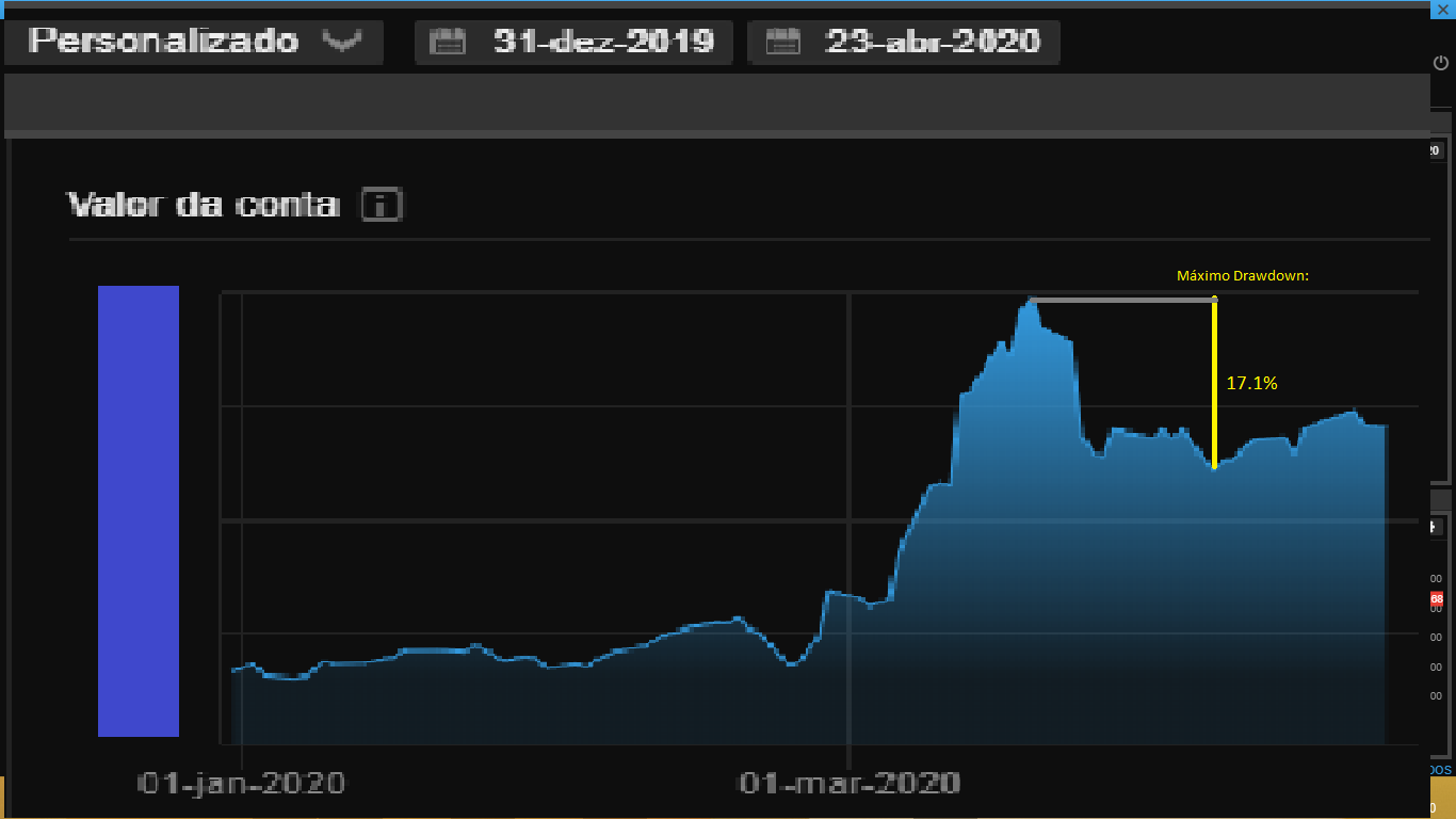 Isso significa que poderá ter de fazer face, em períodos muito adversos, a drawdowns que no limite se poderão aproximar do nível dos 50%, de acordo com os testes efectuados para períodos de trading de vários anos de negociação em acções.