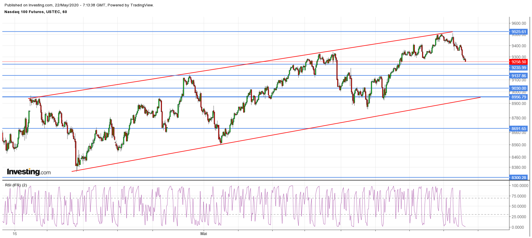 Ontem abri uma posição curta no nasdaq 100 em futuros conforme referido no tópico do sp500 por causa destes gráficos