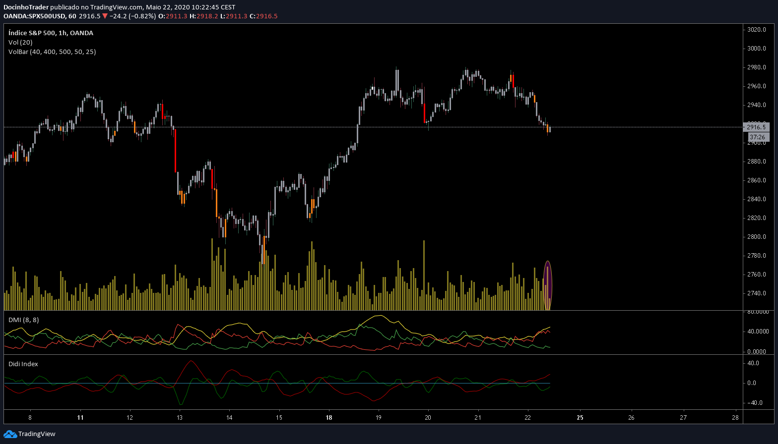 Para analisar o gráfico e o posicionamento da malta com cash, foram utilizados os recursos essencialmente a volumes e barrras de volume.