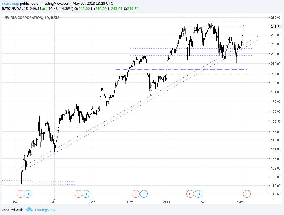 Na verdade ja acompanho a NVIDIA desde 2012, mas n tinha capital pra investir. E quando pude, nao tive coragem. Agora com mais conhecimento de AT senti-me confiante de entrar.