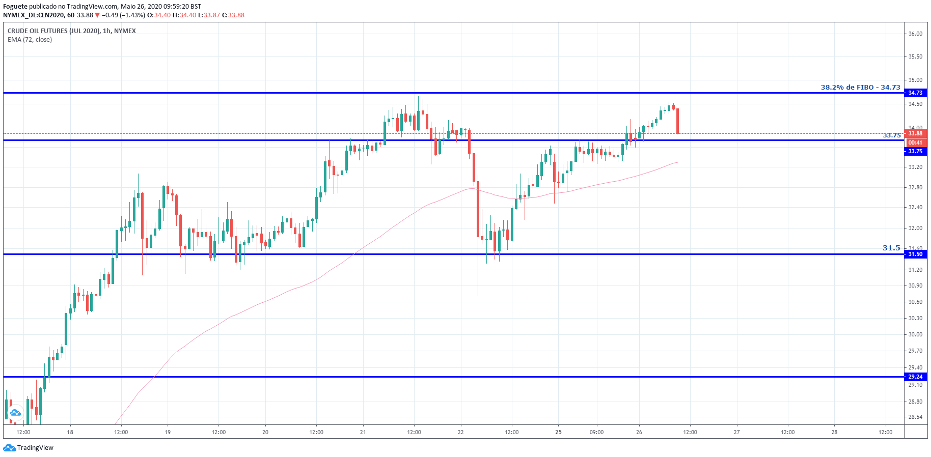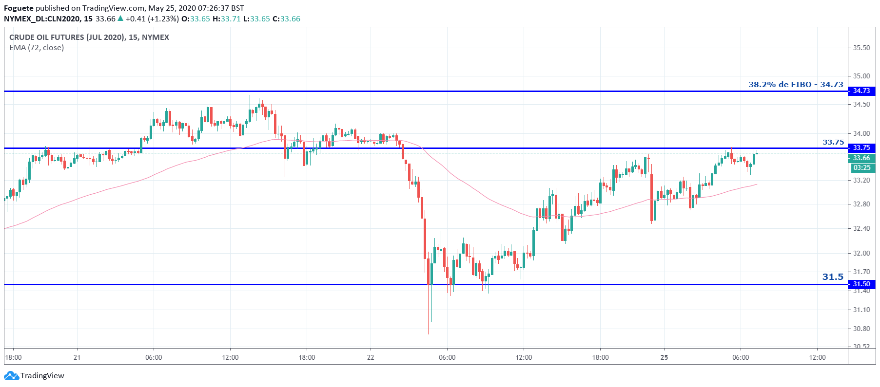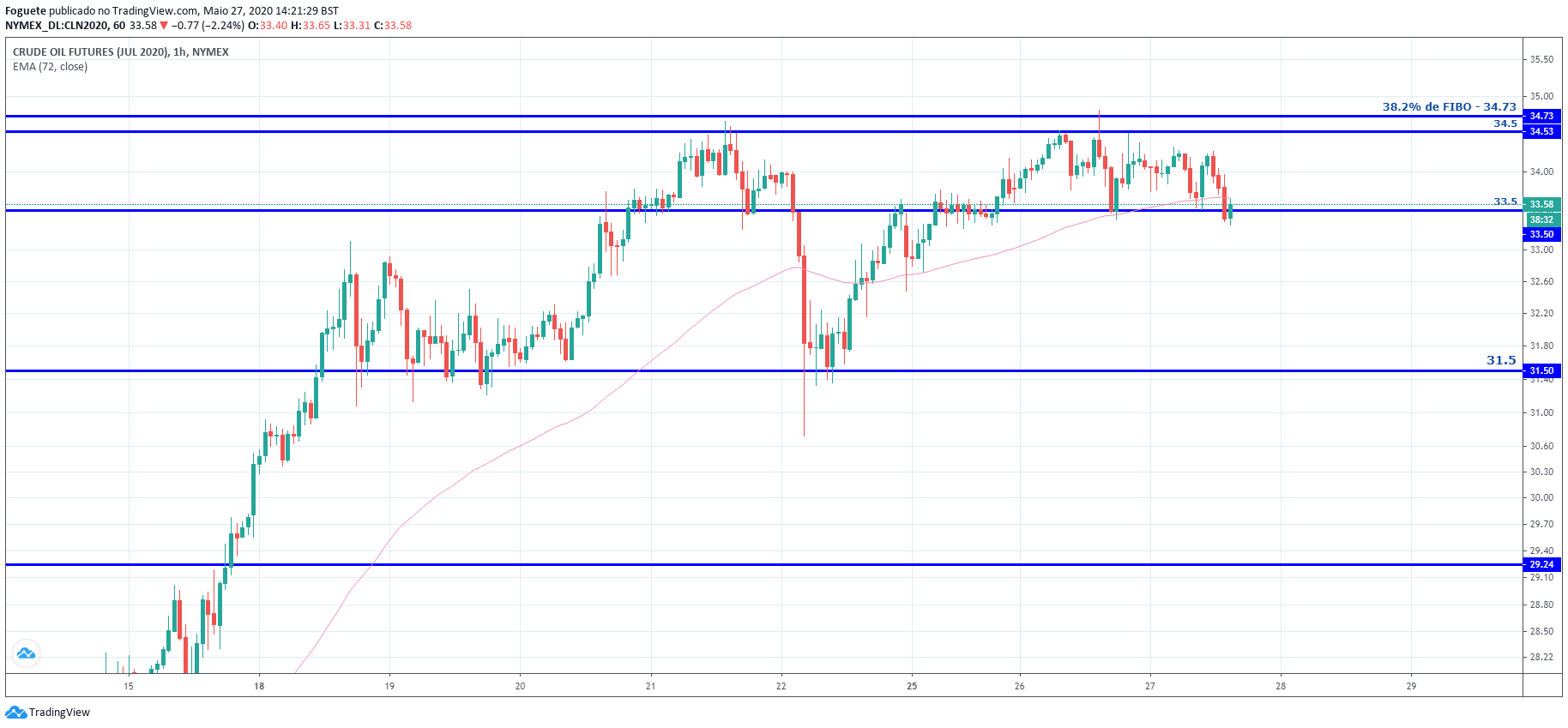Esta zona dos 33 dólares tendo em conta que representa uma zona entre os 50%/61.8% desde os máximos 34.7 e os minimos de hoje, acho q pode ser uma boa zona de abertura de curtos