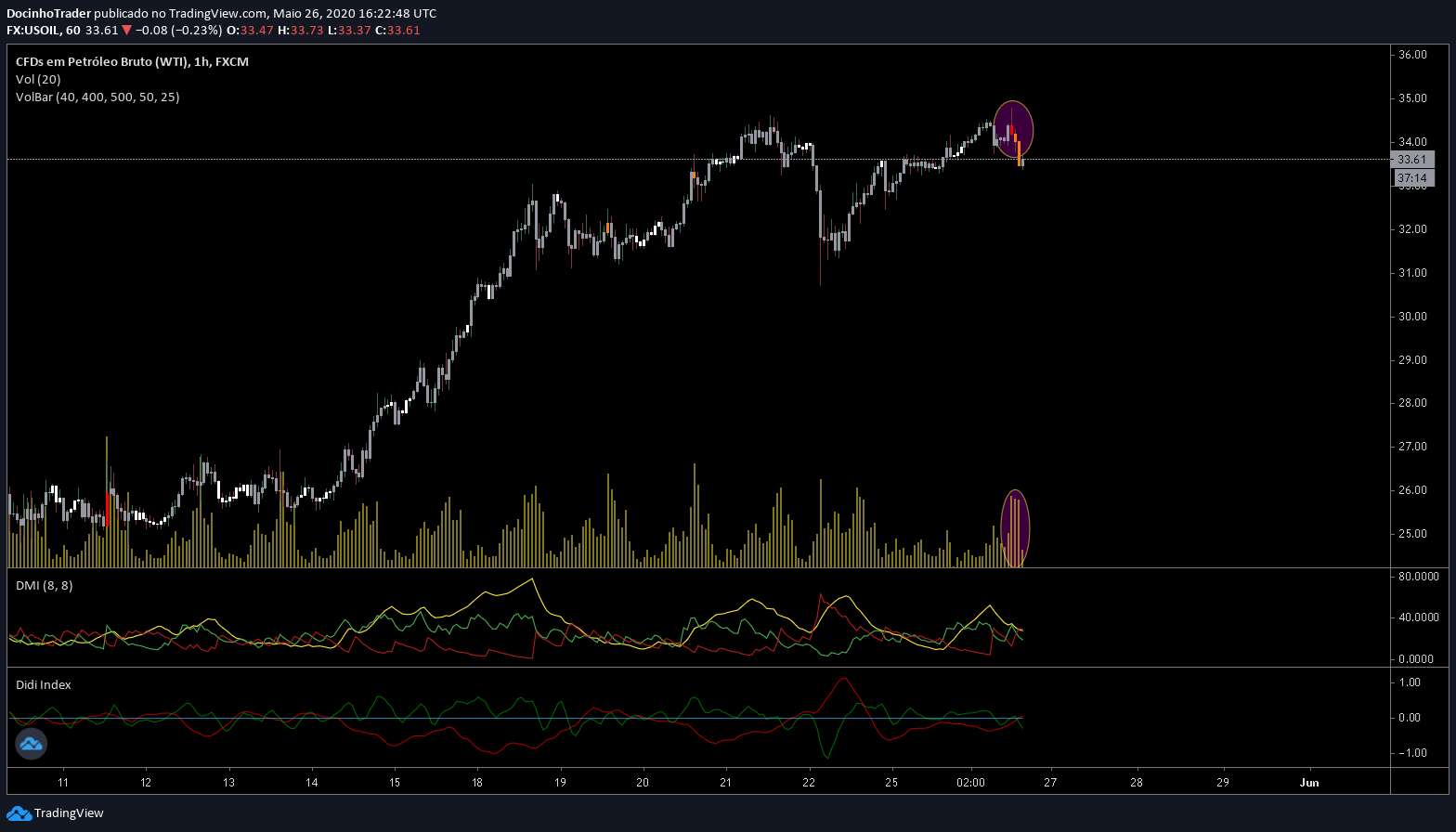 DocinhoTrader Escreveu:Acho que agora sim, um tiro curto no petróleo.Temos um rompimento falso dos topos com volume.Indicadores a pesar já na venda