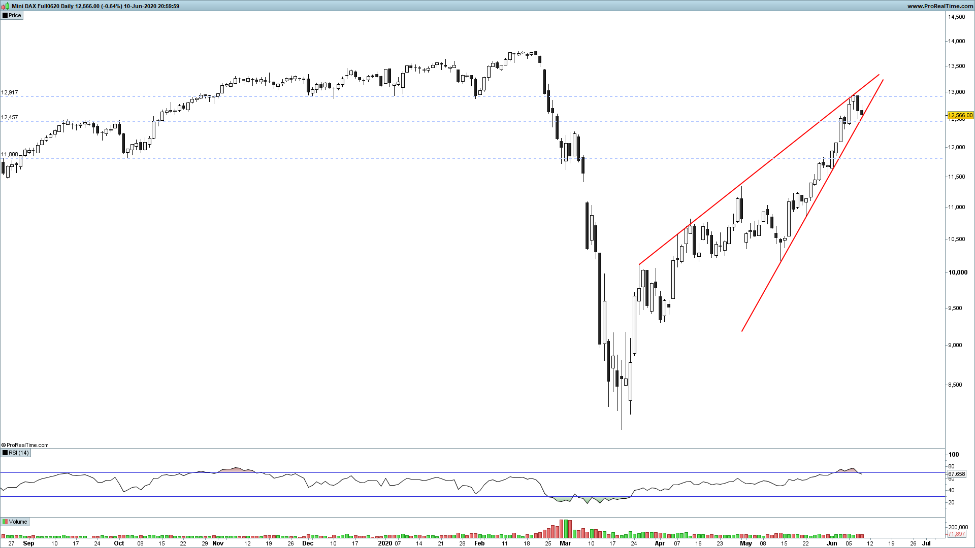 Parece um HS em formação, mais relevante é o suporte que em caso de quebra deve dar algum ânimo aos ursos. Estou para shortar o dax mas levar o short para o fim de semana é arriscado.