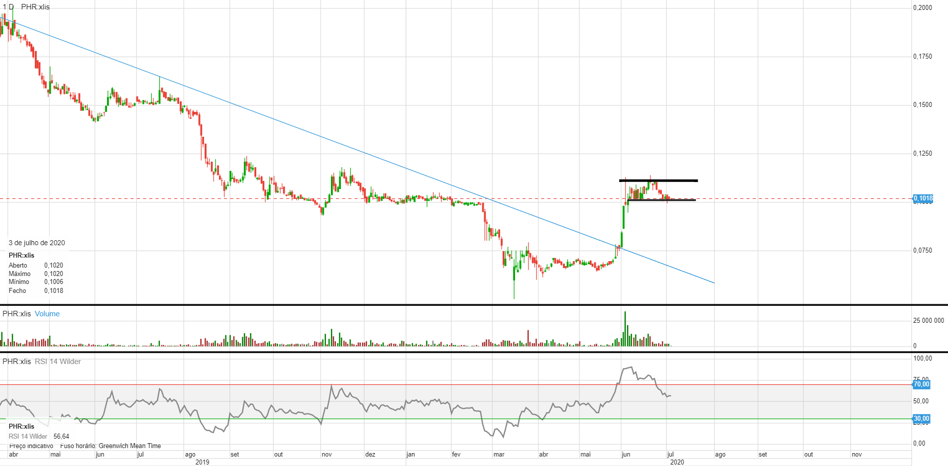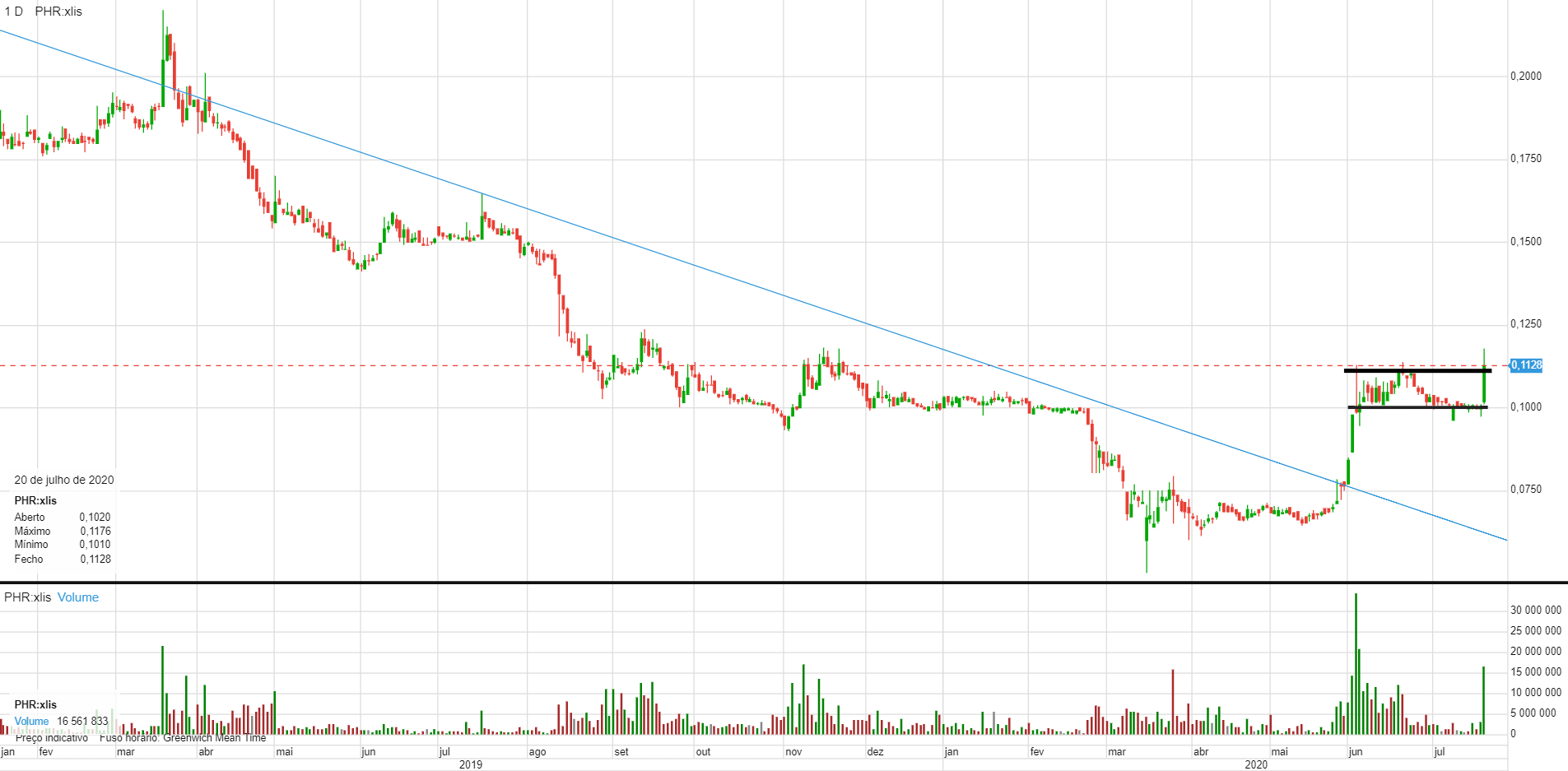 Entretanto os ecos da Oi continuam a ser aparentemente positivos, vamos ver qual o impacto por cá. Parece existir uma estagnação e até (esperada) retracção após o sprint dos 0,06x até aos 0,11x-0,12x. Está agora mais perto dos 0,09. Será que mantém a tendência?