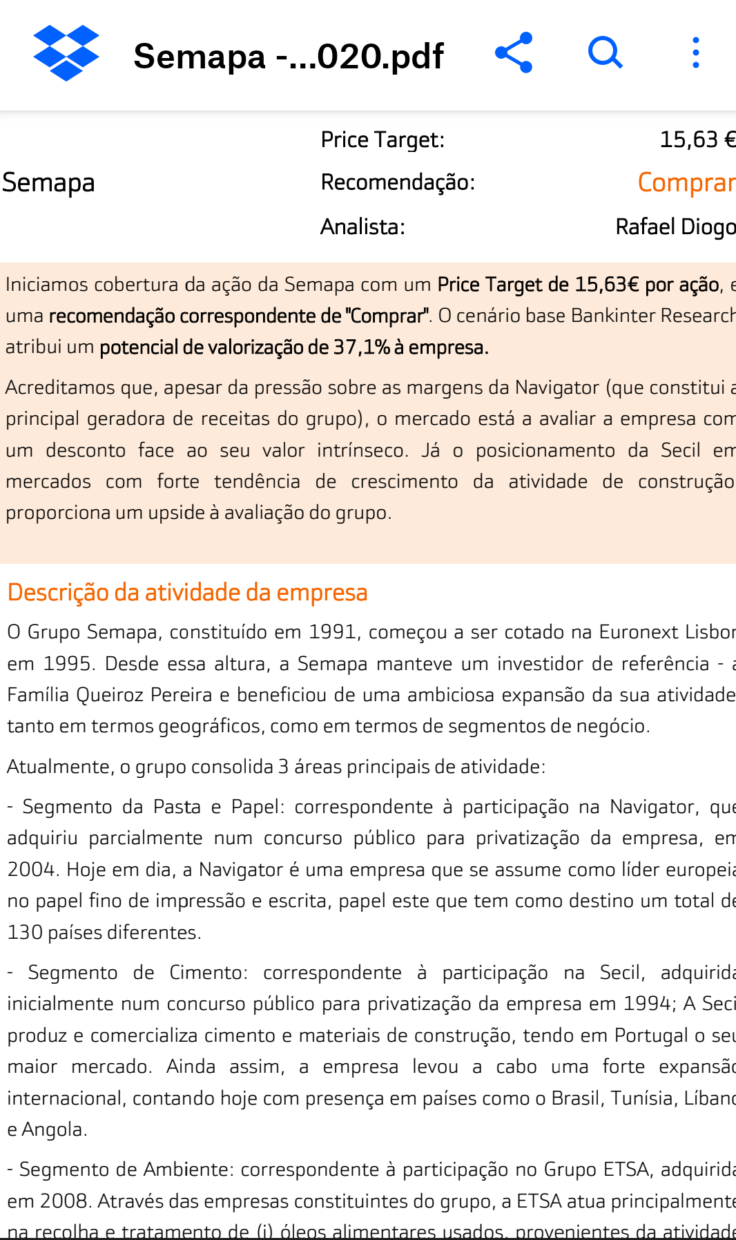 A Semapa a mais de 15 euros? Este research é de Março de 2020.