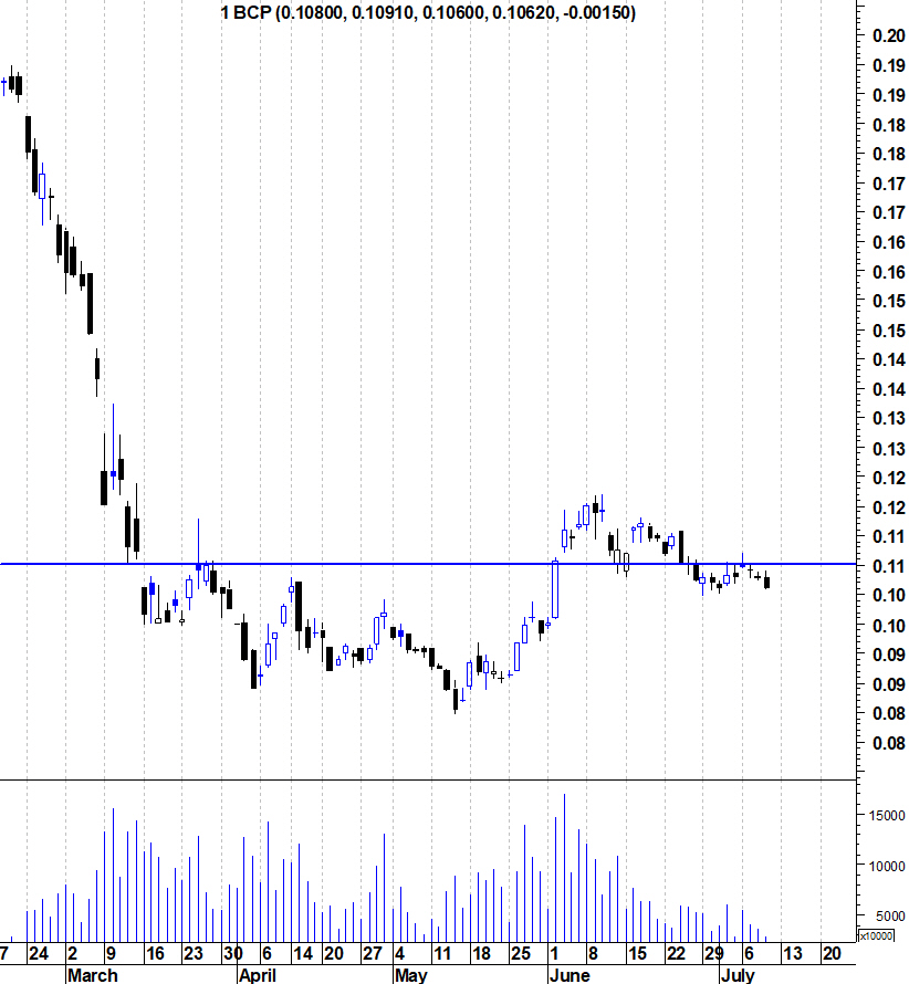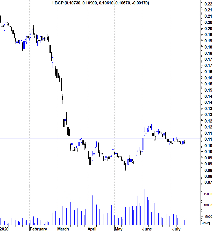 A Banca mundial não tem vivido um grande momento e o BCP não é excepção. Na Segunda-feira teve a possibilidade de voltar para cima dos 0,11, mas fraquejou durante a sessão.