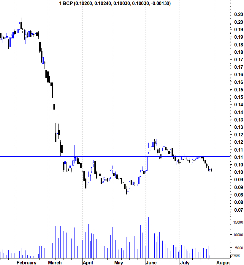 O comportamento do BCP está mesmo a adivinhar quedas profundas, e com a apresentação de resultados semestrais na próxima semana (que seguramente não serão famosos) está tudo preparado para regressar à casa dos 0,09....
