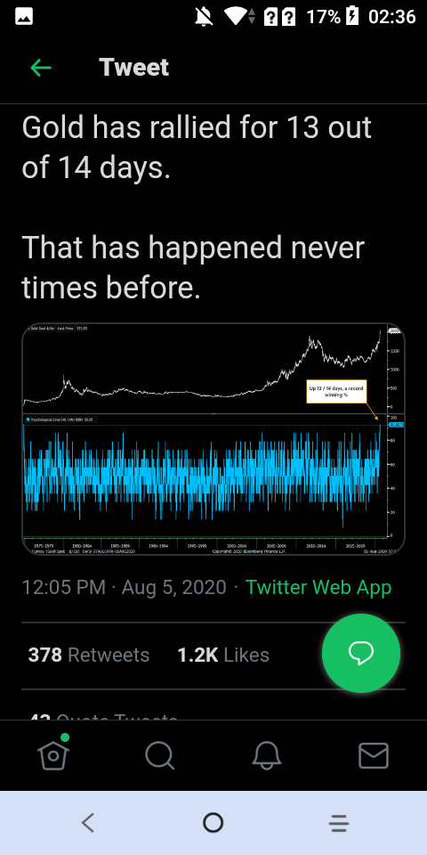 Pois foi precisamente no dia em que o ouro tem a maior queda em 7 anos que a Son consegue fazer um vela de jeito em 15 sessões seguidas.