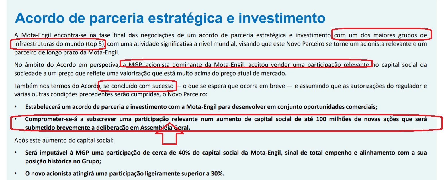 A familia Mota ... a MGP vai encaixar um grande valor mas perde a posição dominante na Mota-Engil, ou seja perde a maioria!!!