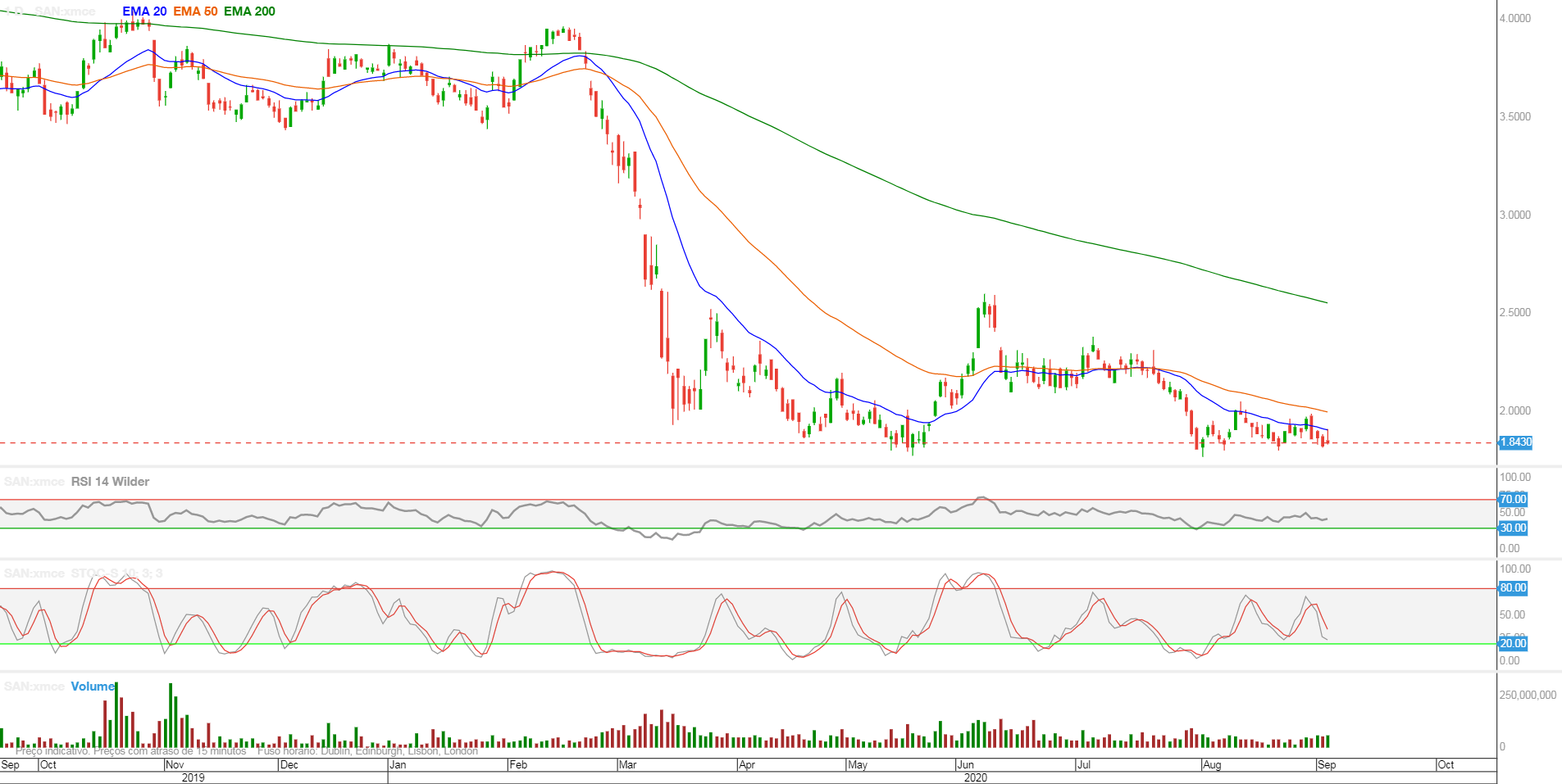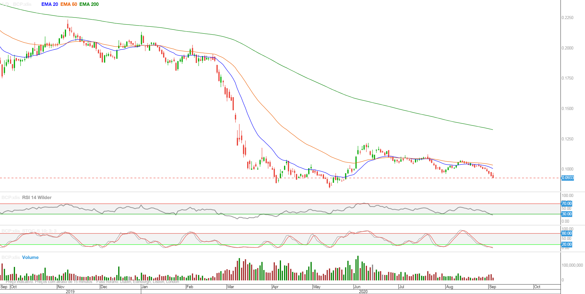 O volume transaccionado e a queda pouco acentuada desde 1 de Setembro, pode indicar uma nova tentativa de furar a resistência, já hoje falada, dos 0,11€.