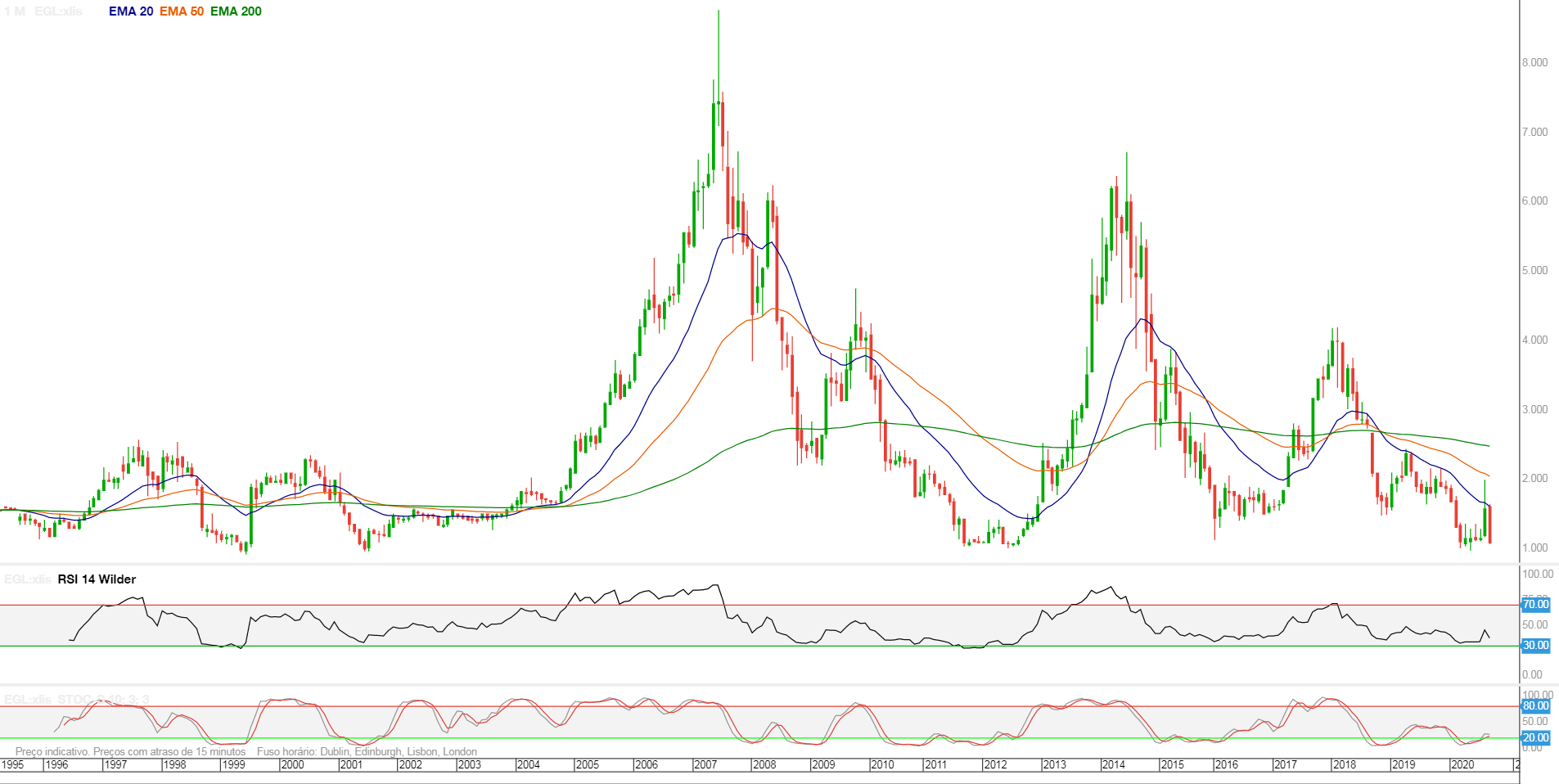 O gráfico de longo prazo mostra que a mota é maluca. Sobe como um foguetão, cai em queda livre.