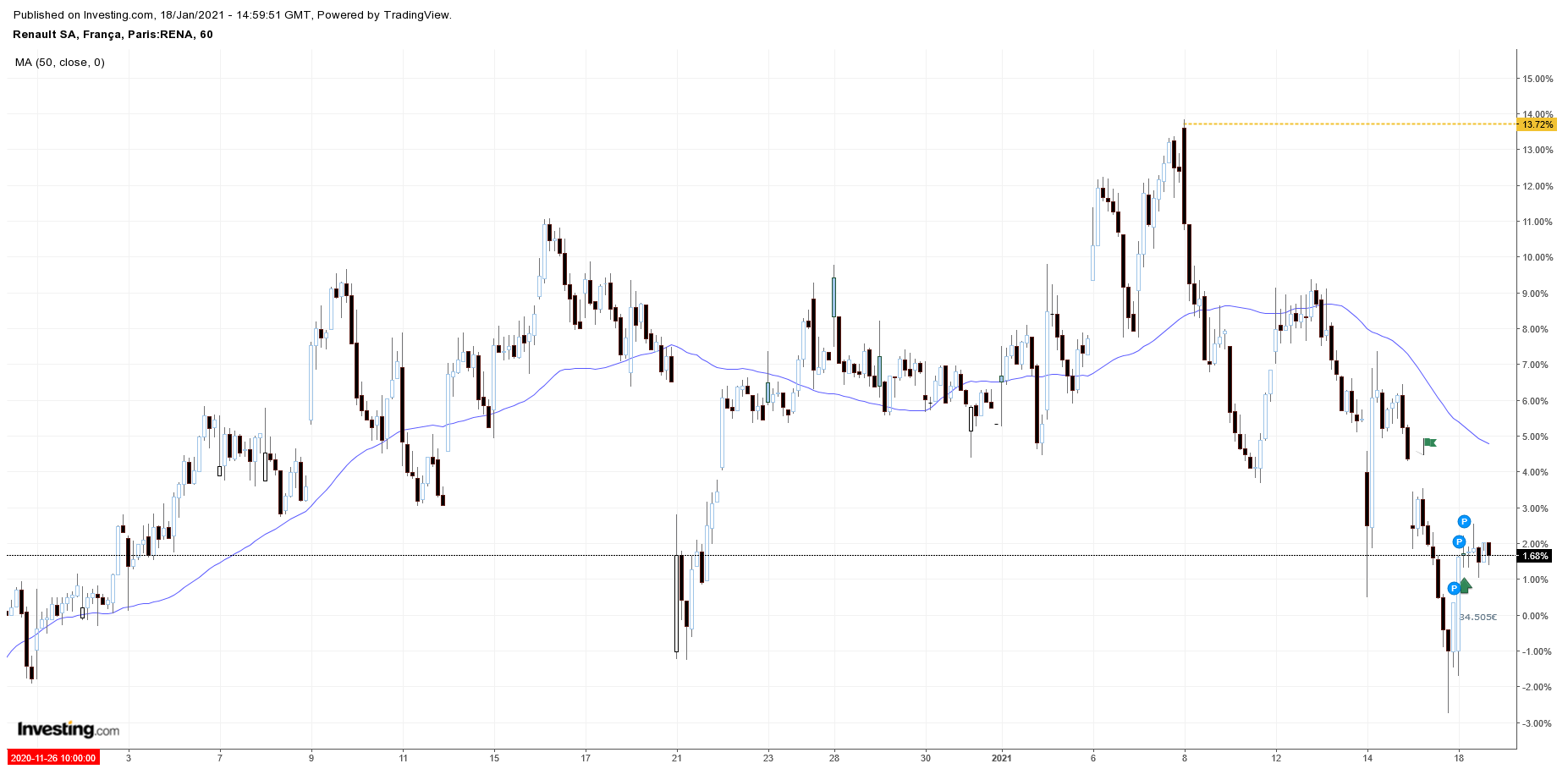 Atenção ao movimento da Renault no gráfico 1h.
