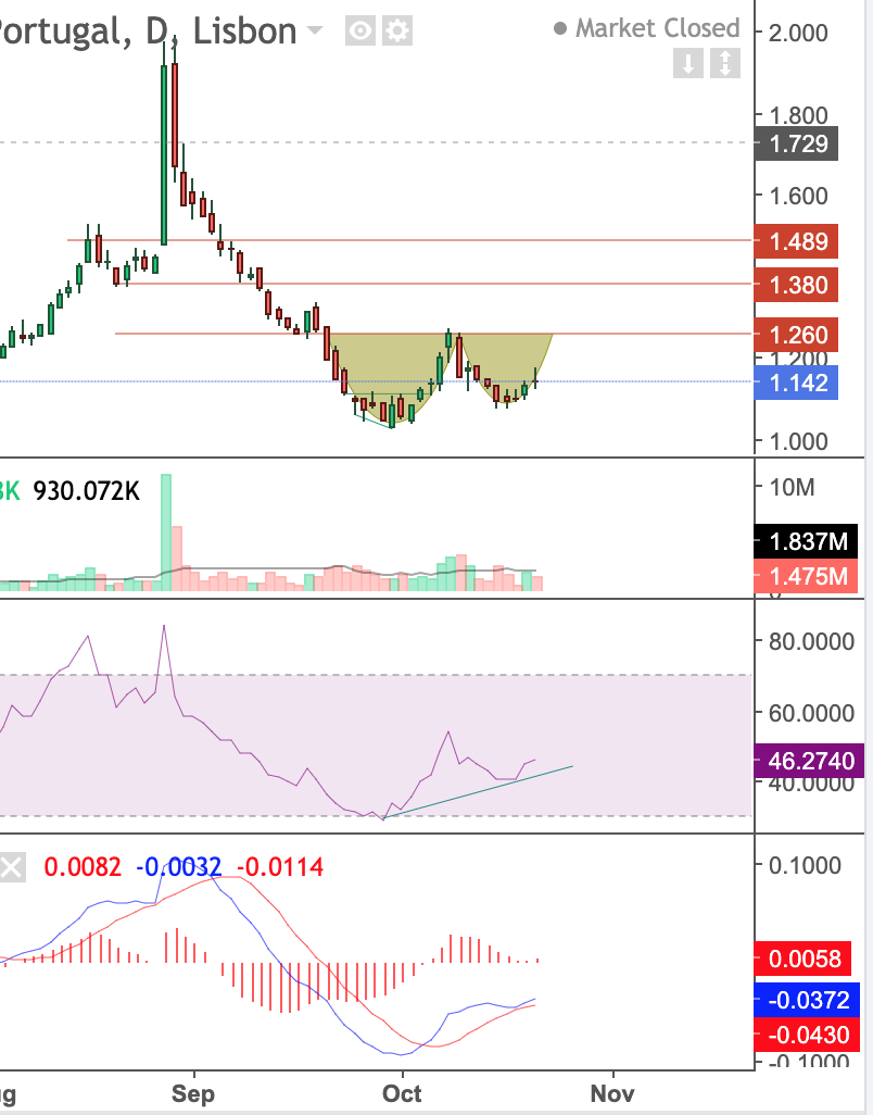 Pode andar a consolidar agora durante uns dias no range de hoje (1,12€-1,17€), não me admirava muito, dada a vela.