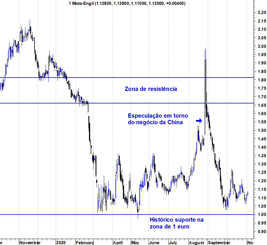 Aqui fica o gráfico actualizado da Mota onde continuamos à espera da clarificação do negócio da China.