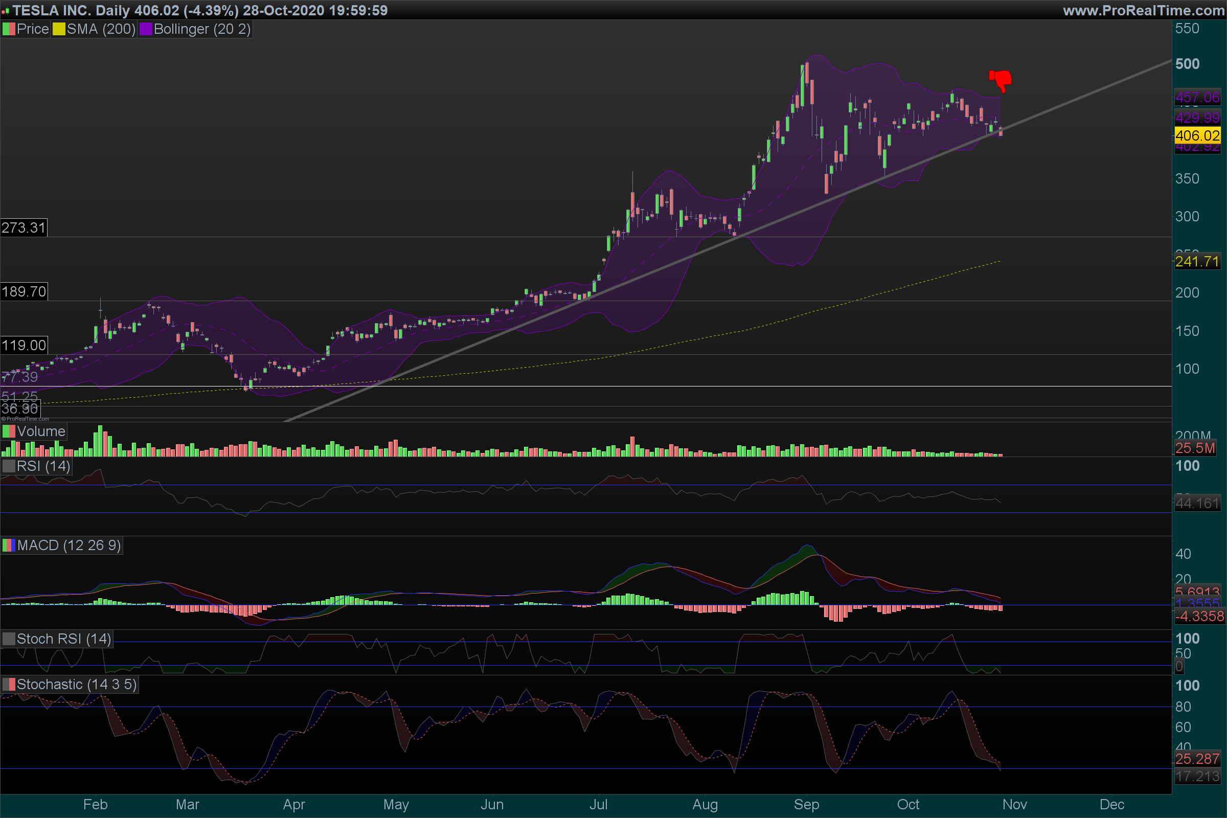 Abertura de hoje foi dura para a Tesla, um GAP de baixa logo a desvalorizar 14% tendo fechado a sessão -21%.