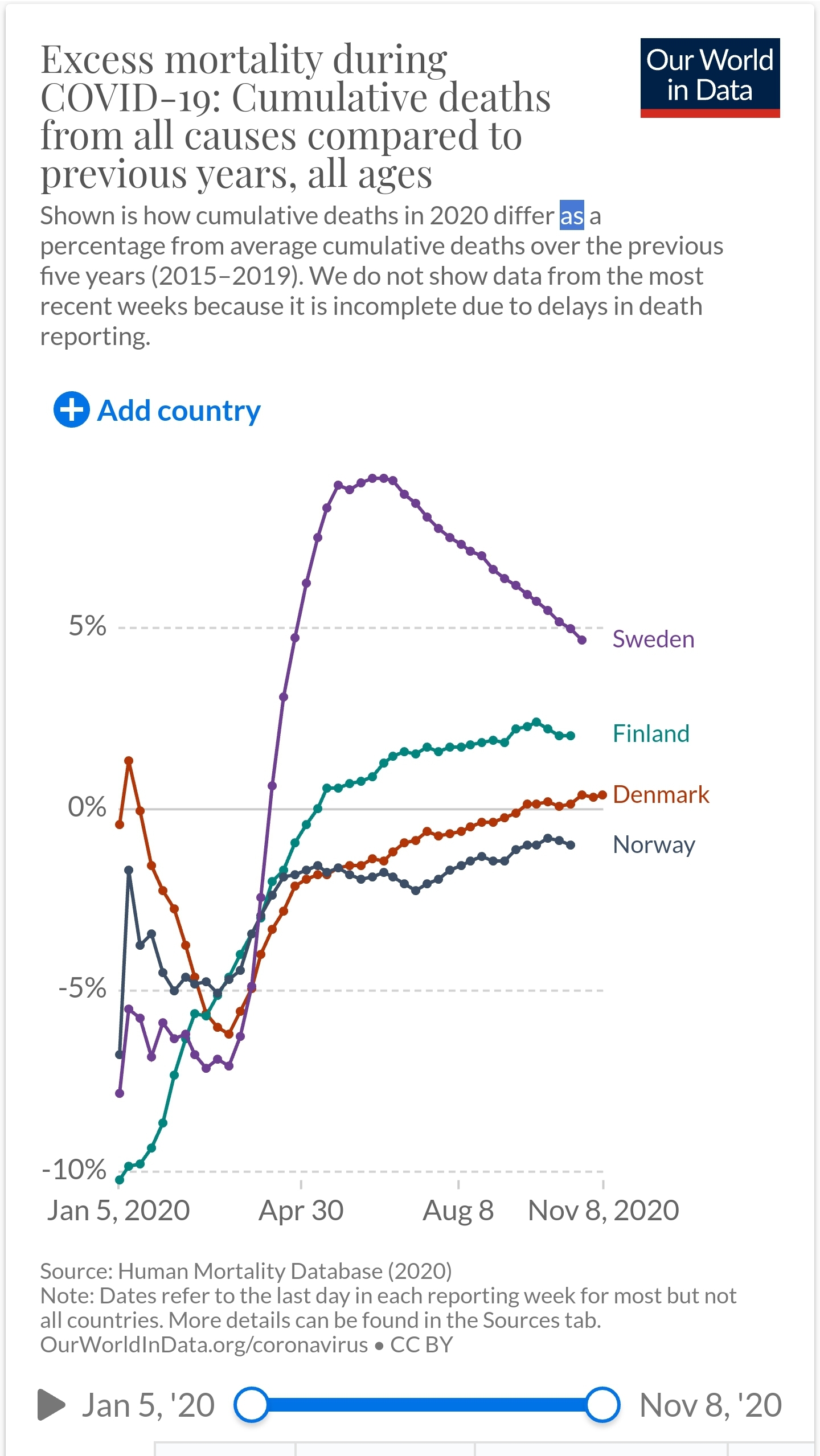 O que nos diz este grafico é que a Suecia em finais de Outubro tinha um desvio % de mortalidade face à media de 4.8% ou algo do genro, a Finlandia de 2%, etc etc